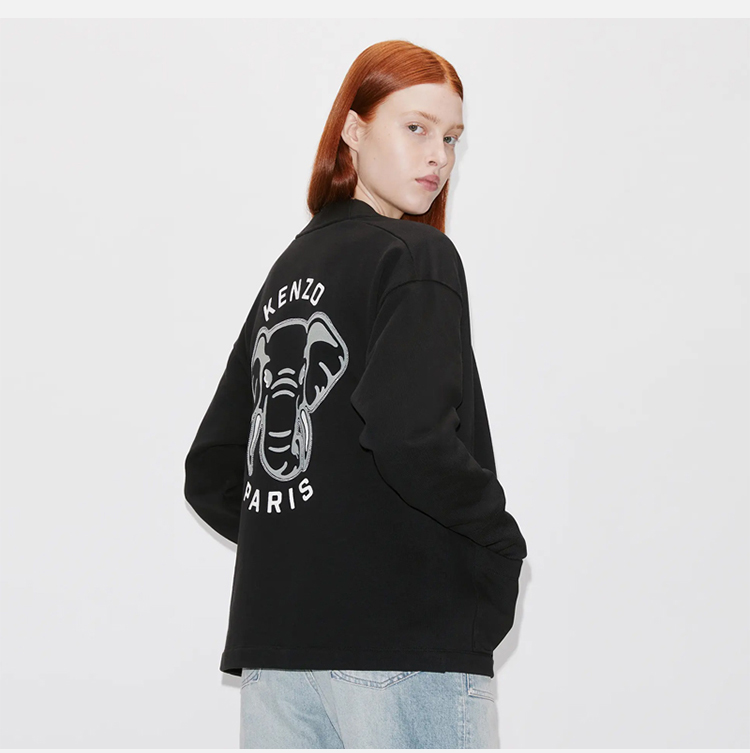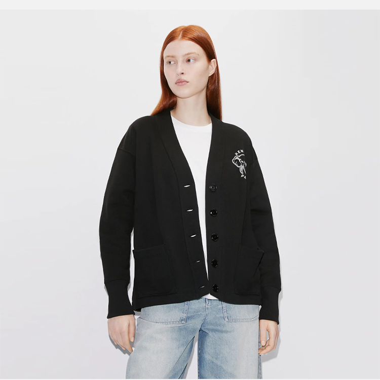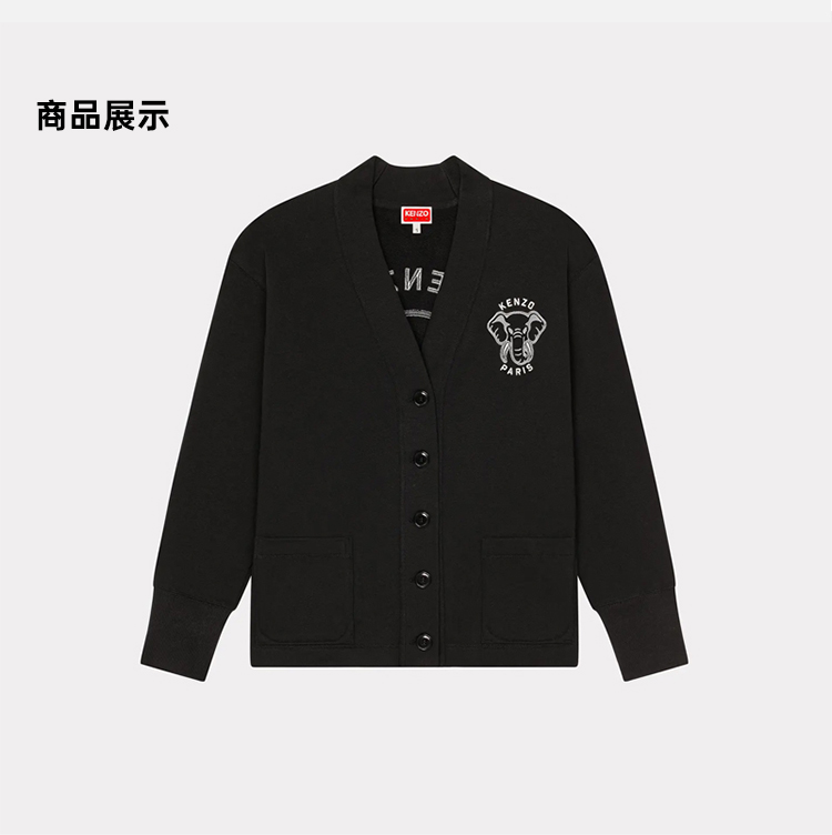 【一】KENZO 高田贤三 女士大象徽标图案印花棉质针织开衫 黑色 FD62 SW094 4ME 99J