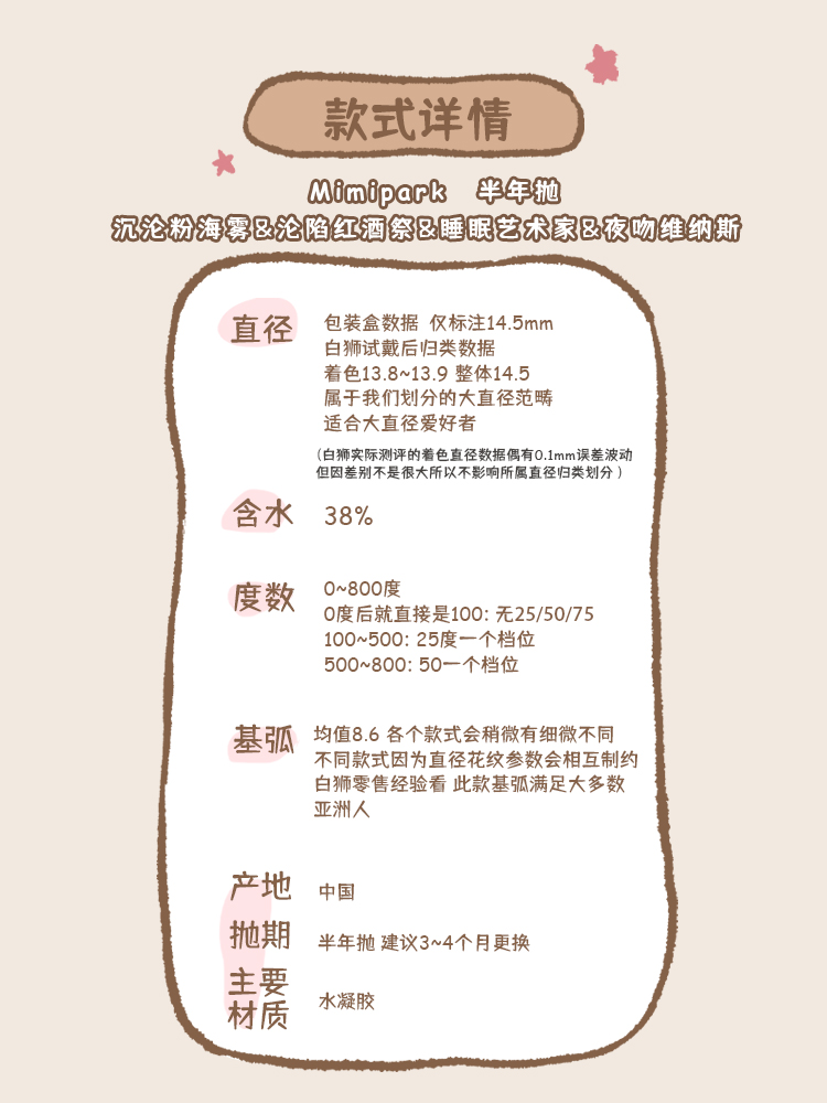 Mimipark旗下 ·|沉沦粉海雾&睡眠艺术家&夜吻维纳斯 14.5mm白狮参考着色大直径|半年抛 2片