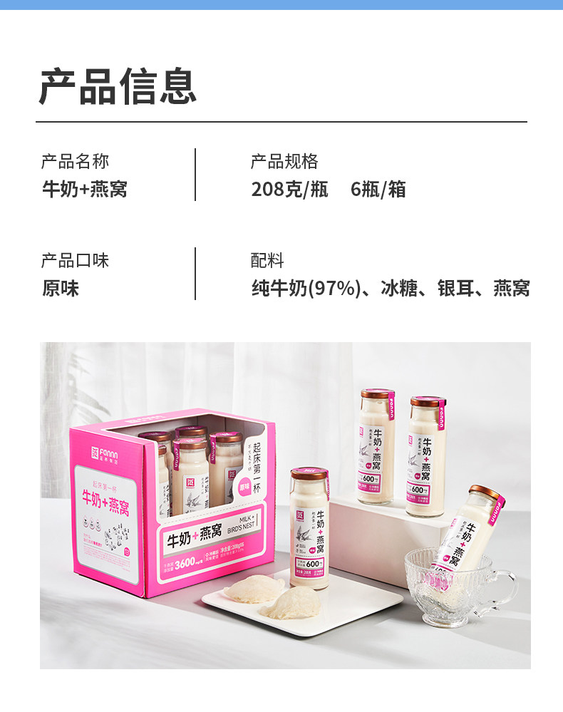 滋养有范 牛奶燕窝即食饮品208g*6(原味)