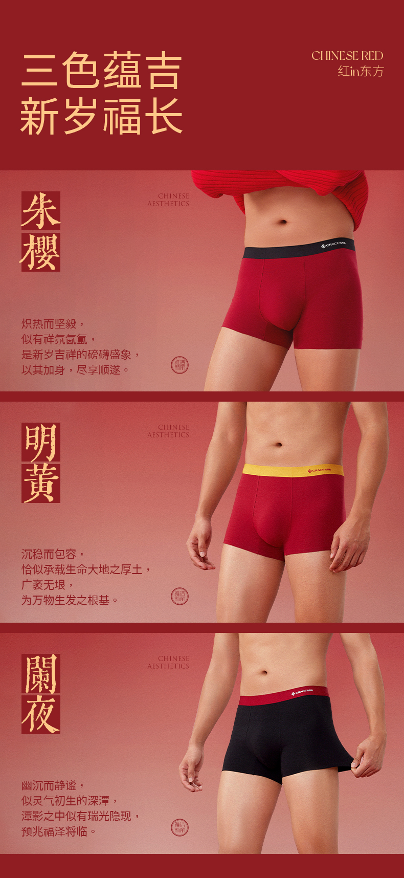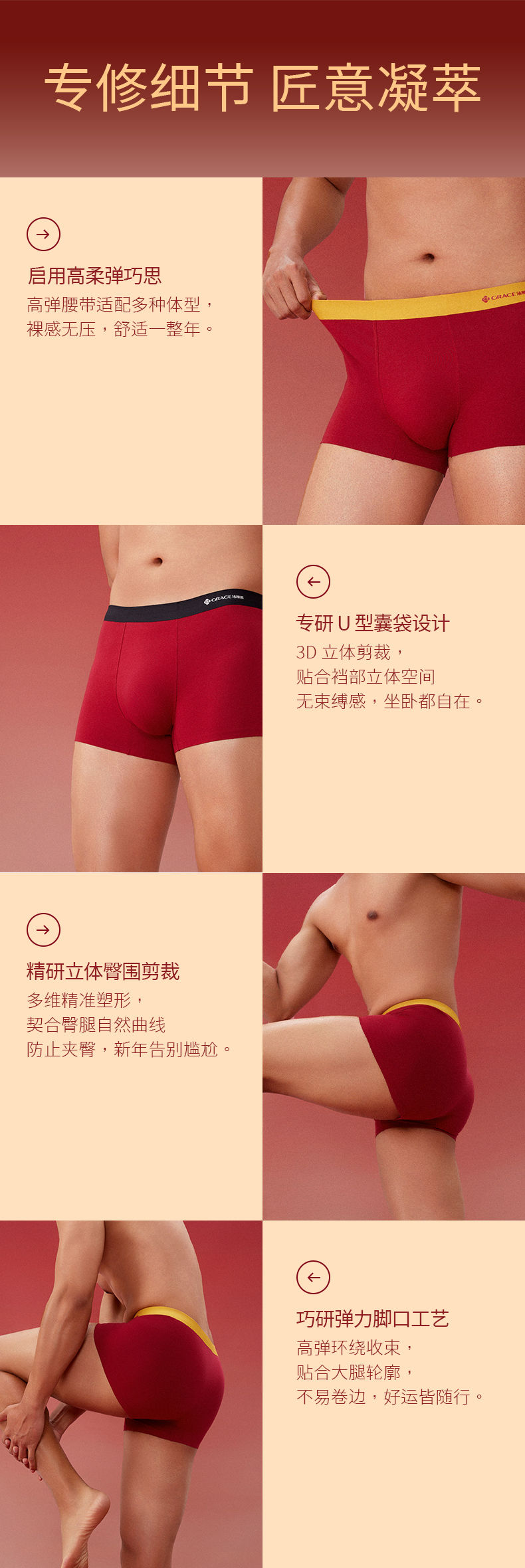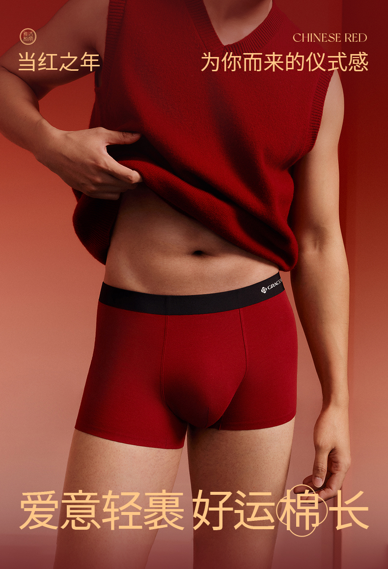 洁丽雅男士内裤7A抑菌红映东方平角短裤礼盒成人大码高档红色透气