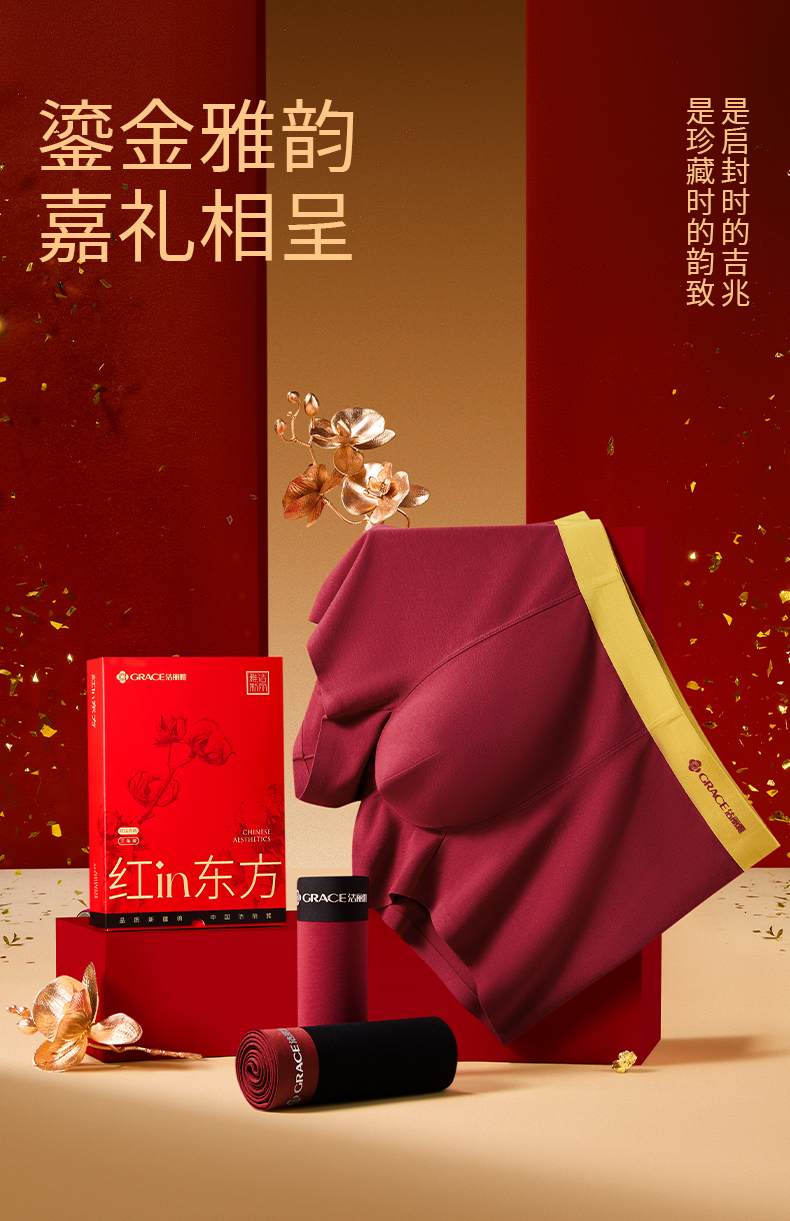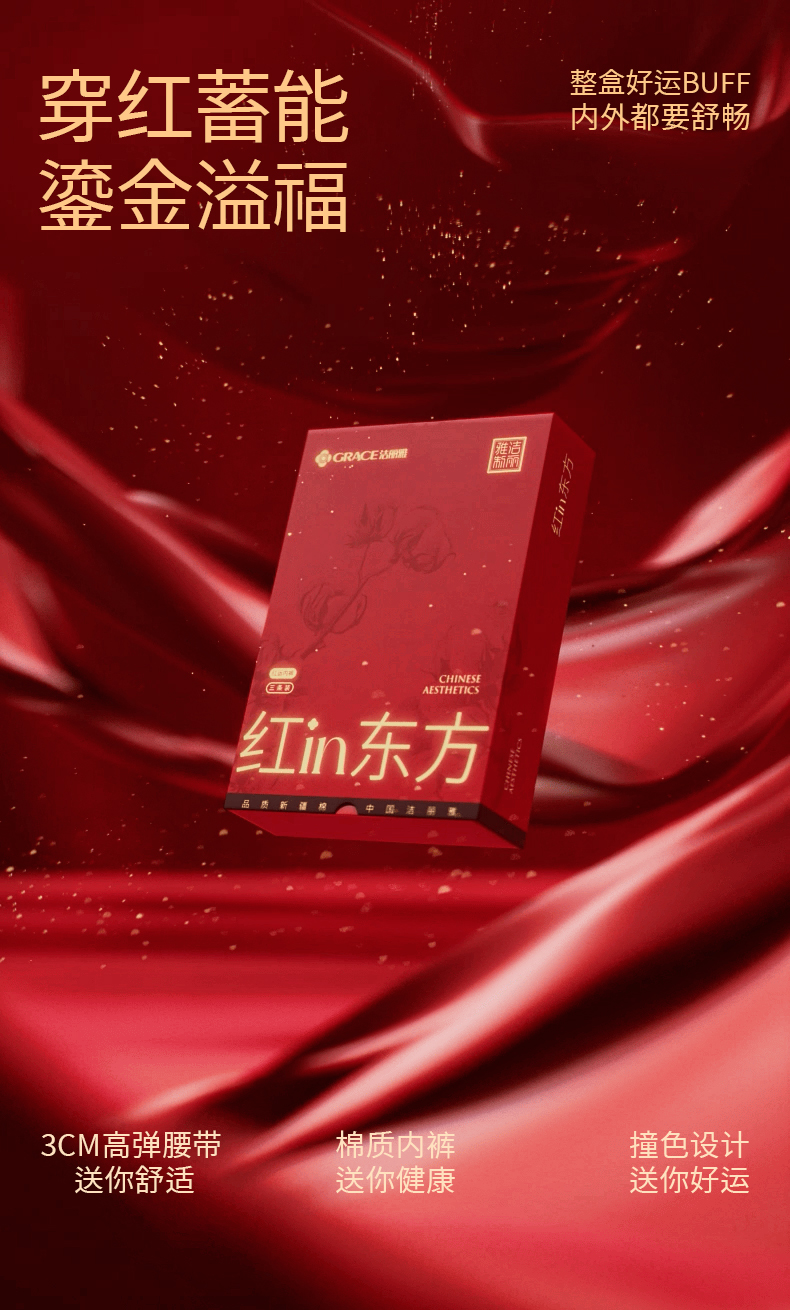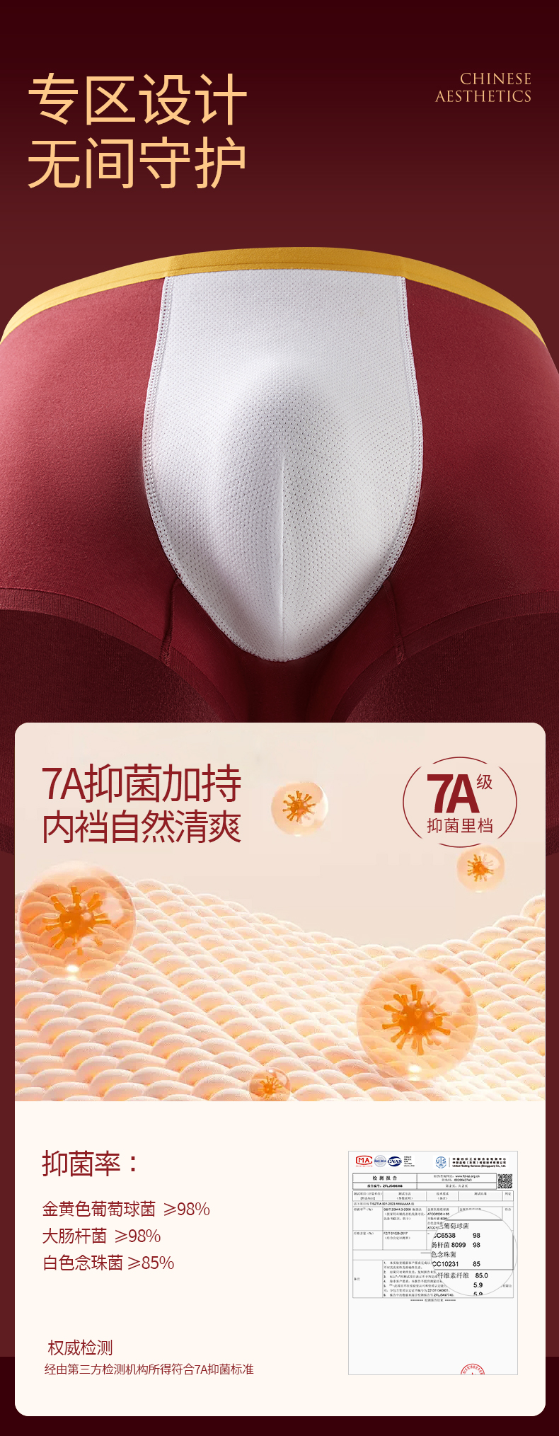 洁丽雅男士内裤7A抑菌红映东方平角短裤礼盒成人大码高档红色透气