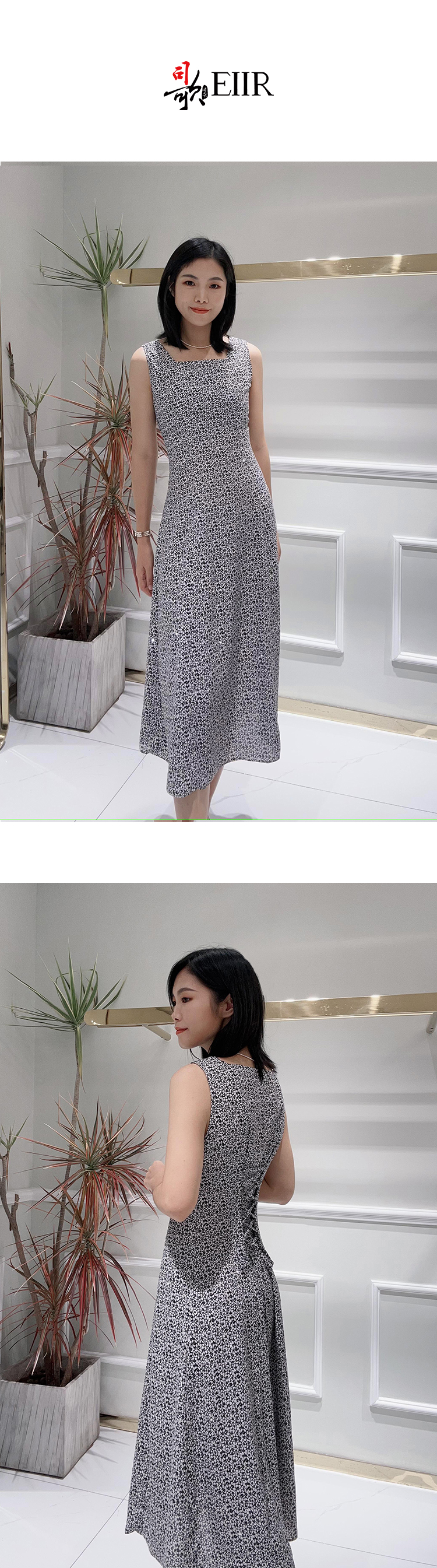 EIIR司歌黑白方领无袖背心连衣裙礼服抽绳显瘦优雅EA881421