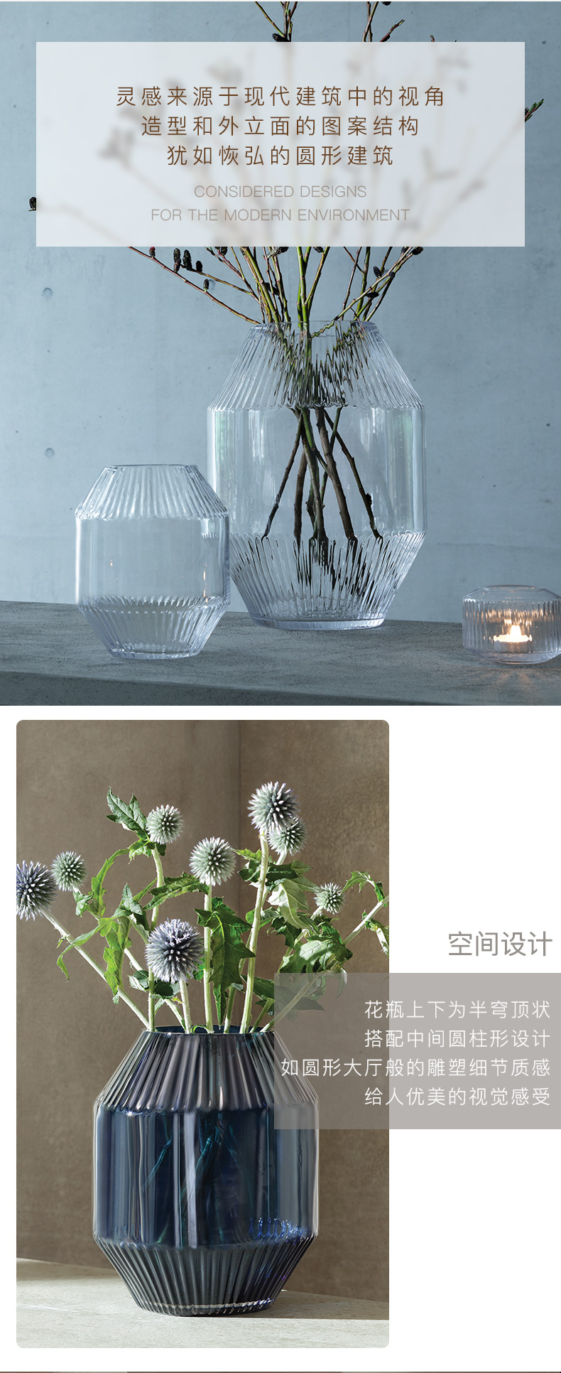 LSA Rotunda 纯手工玻璃花瓶 创意百褶家用玻璃花瓶透明 轻奢装饰花器摆件