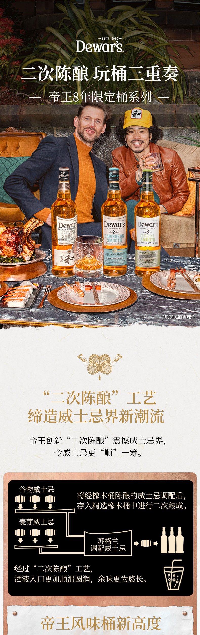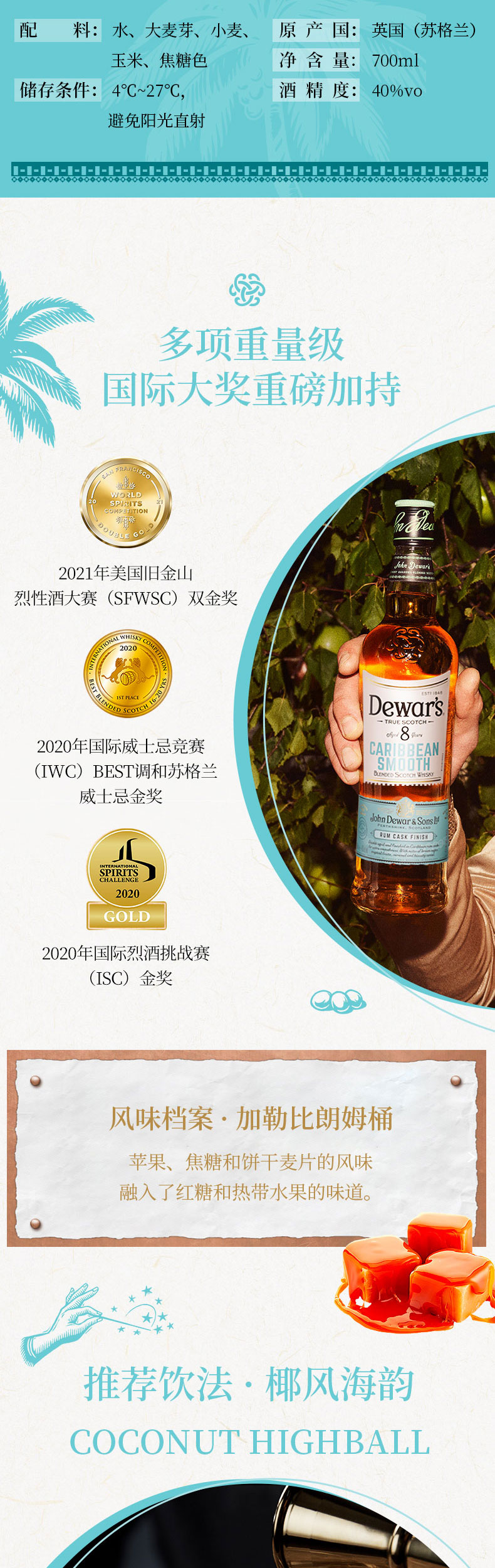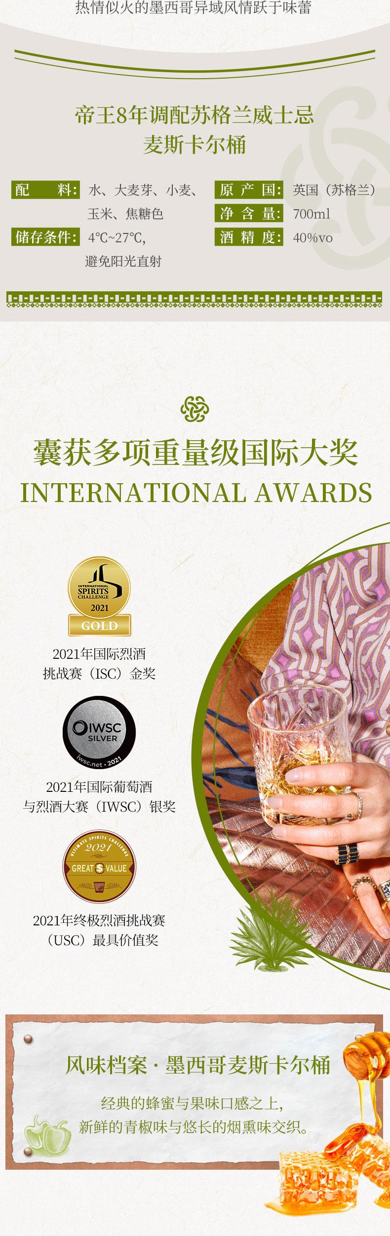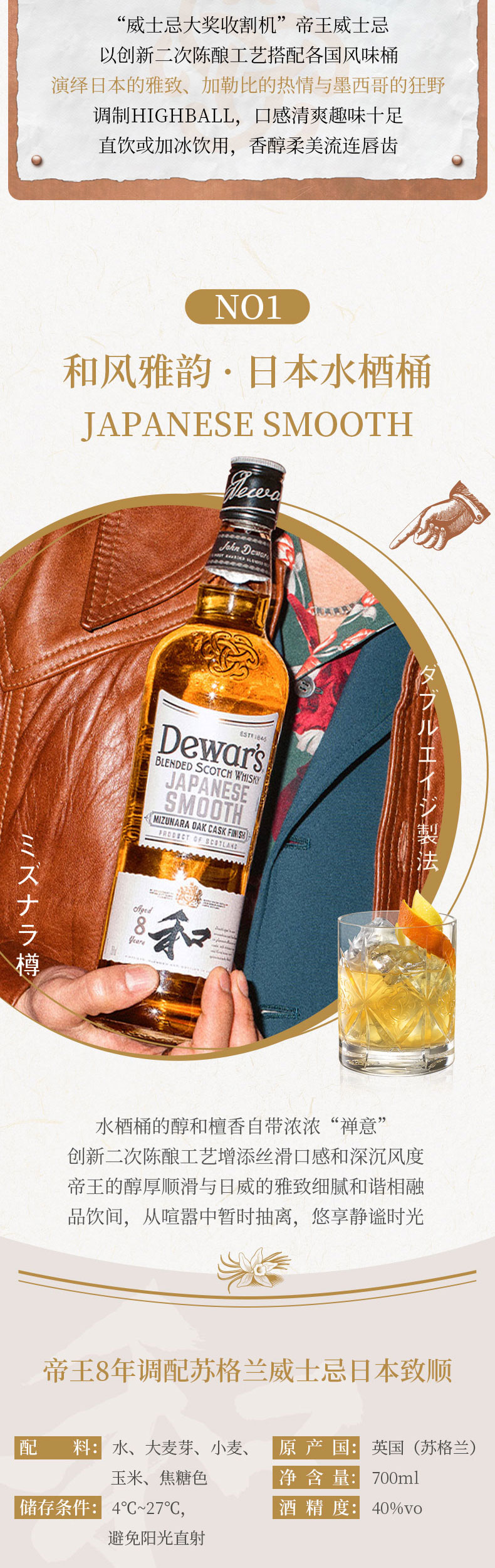 帝王8年调配苏格兰威士忌 700ml*3 日本水梄桶/加勒比朗姆桶/墨西哥麦斯卡尔桶