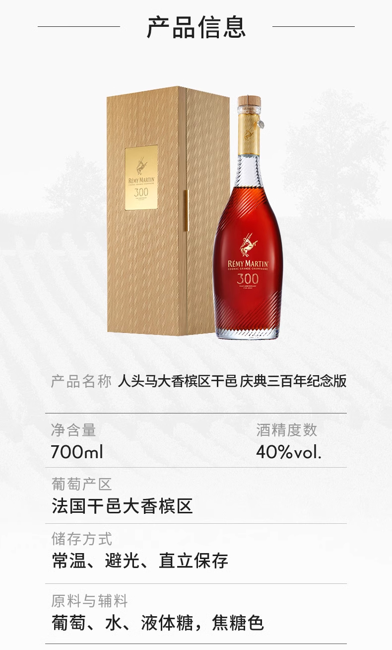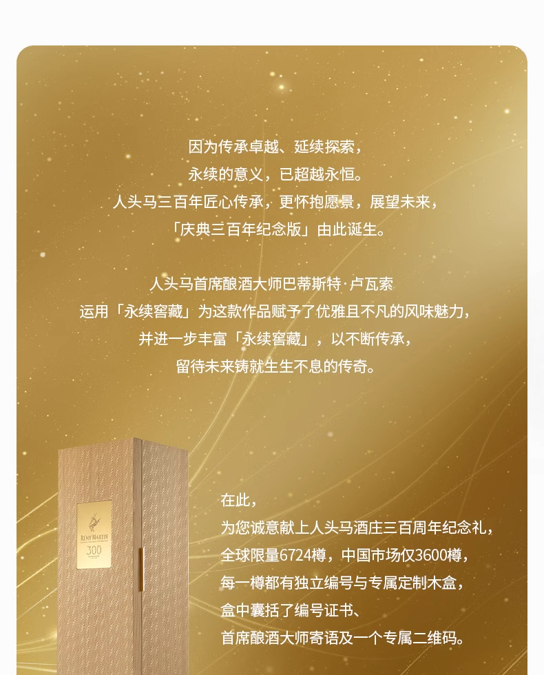 【有税版】【全球限量6724瓶】人头马300周年庆典纪念版 干邑白兰地洋酒 700ml