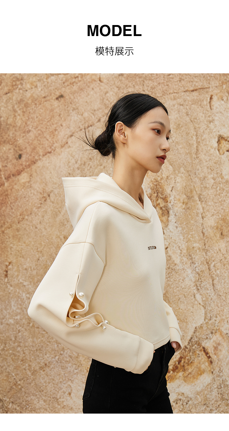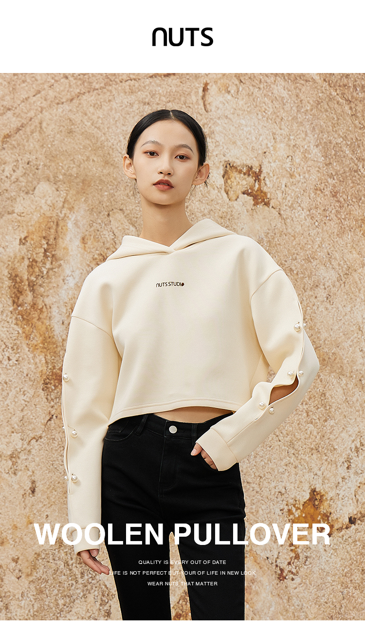 NUTS休闲简约气质通勤短款百搭宽松连帽卫衣女341021108