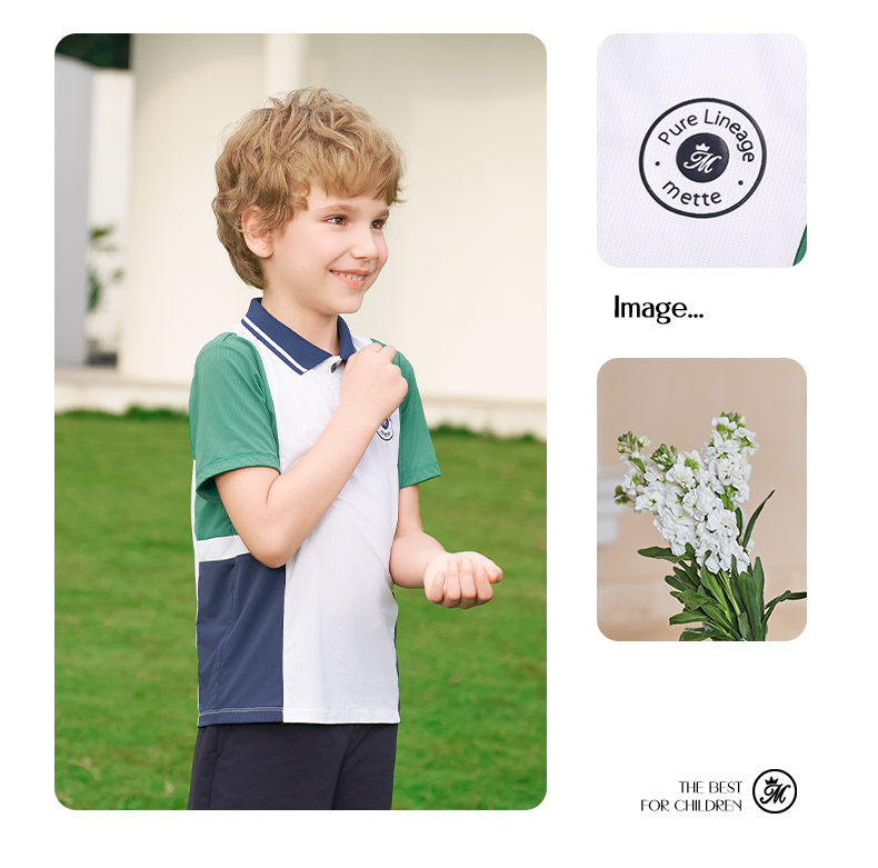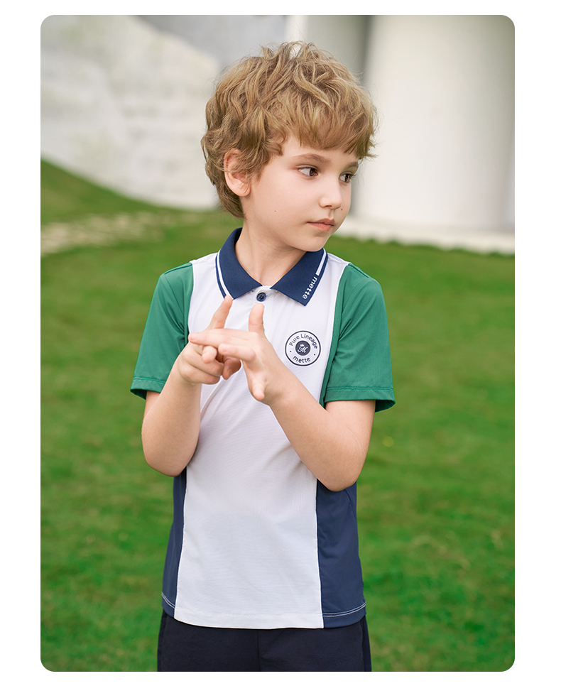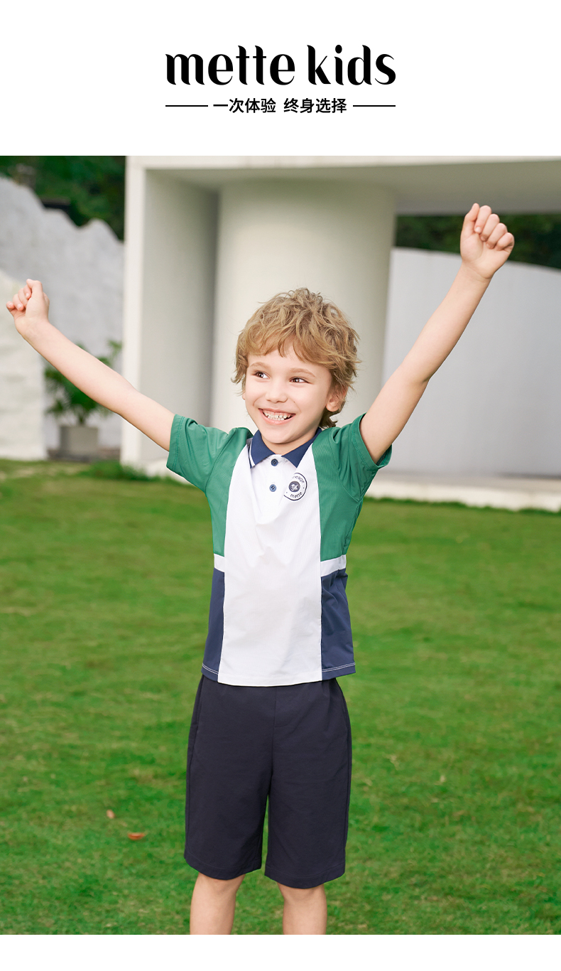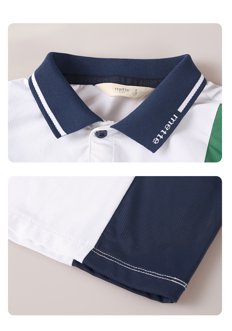 mettekids男童短袖t恤2024夏新款撞色拼接童装上衣儿童休闲polo衫