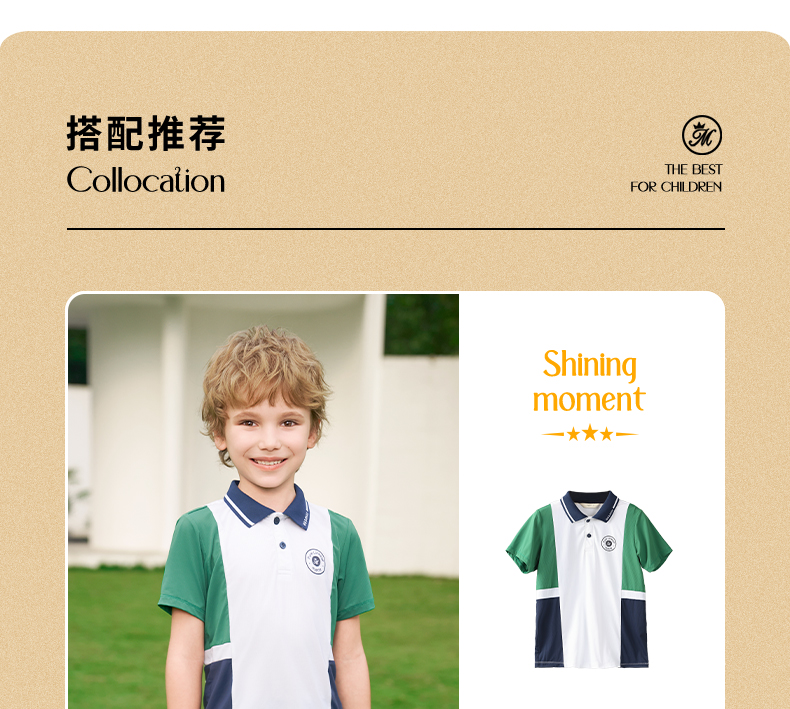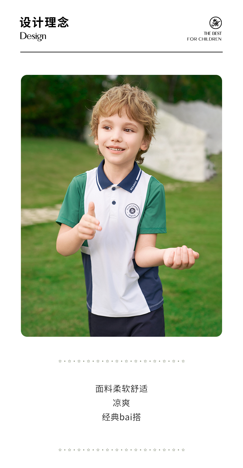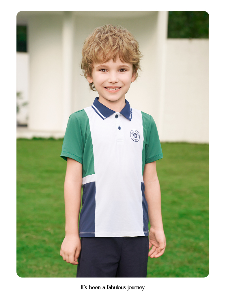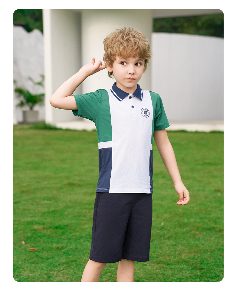 mettekids男童短袖t恤2024夏新款撞色拼接童装上衣儿童休闲polo衫