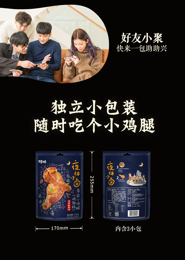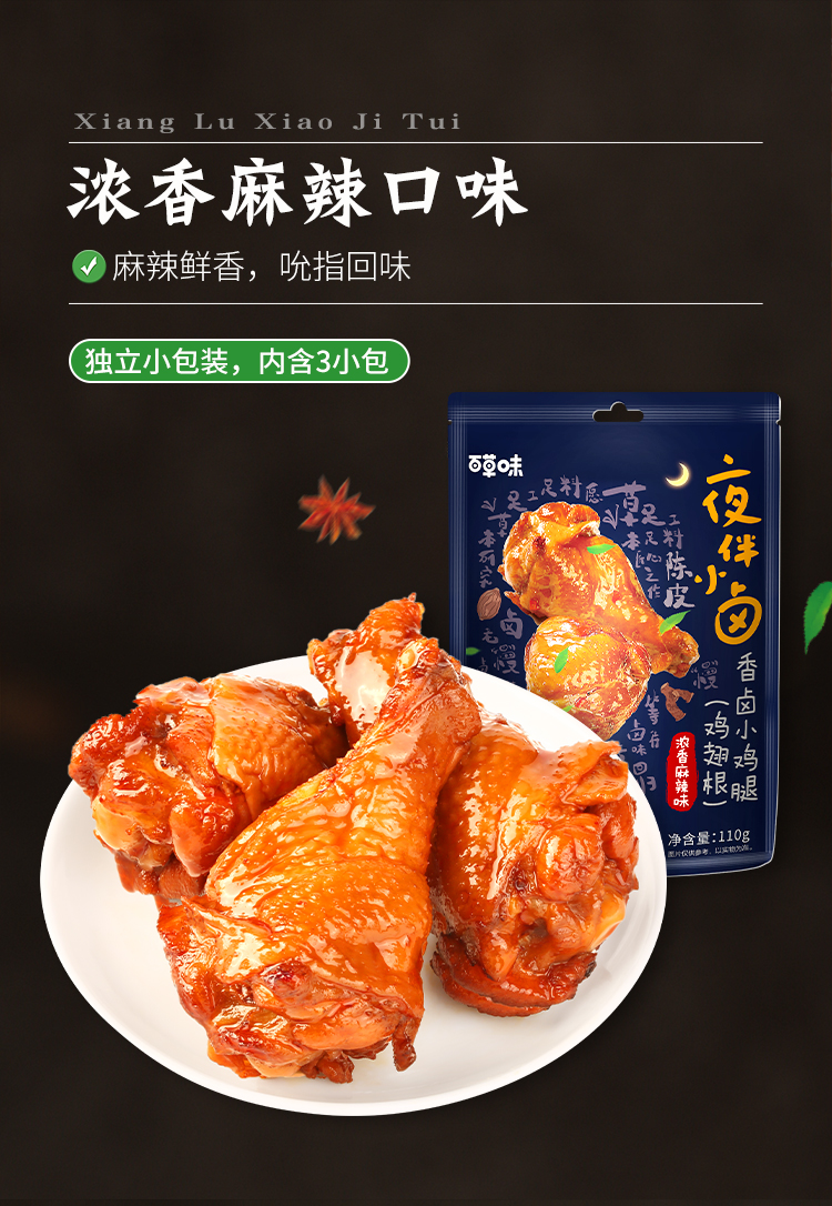 【满299减210】百草味浓香麻辣味香卤小鸡腿(鸡翅根)110g 麻辣过瘾