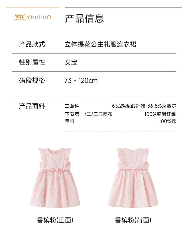 英氏儿童连衣裙女童公主裙夏季背心裙子周岁礼服新款YRLCJ1S003A