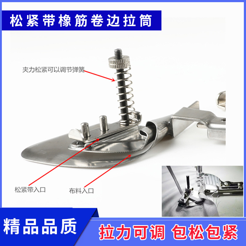 平车电脑车工业缝纫机橡筋卷边拉筒床笠包松紧带卷边器袖口下摆筒
