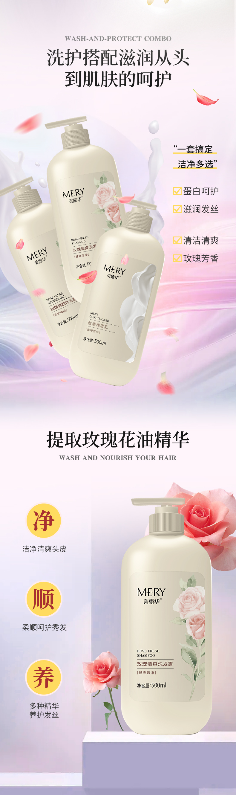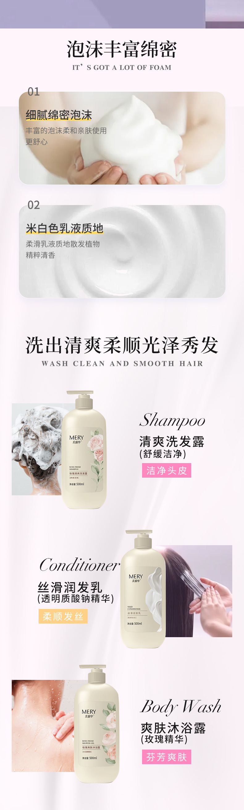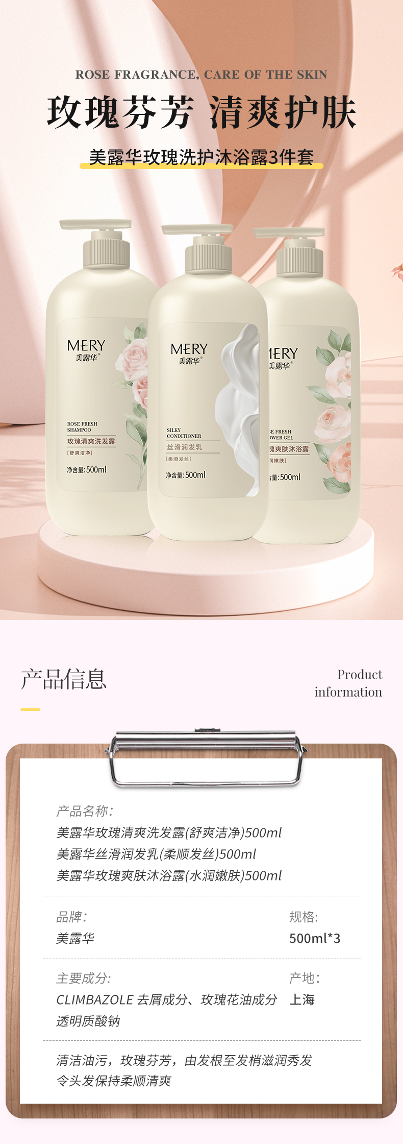 自营(美臣)-美露华玫瑰清爽型洗护沐浴露三件套