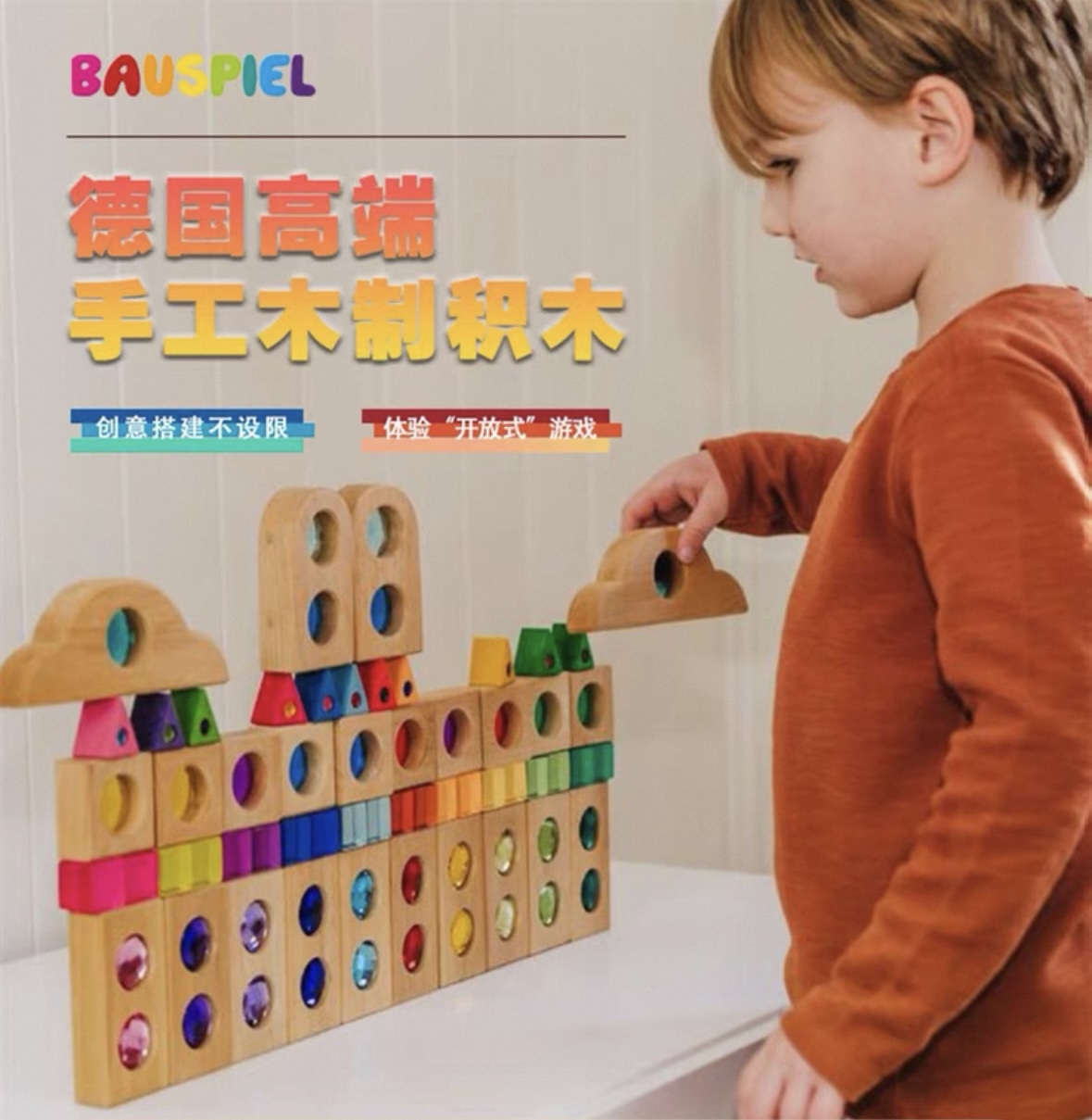 德国 Bauspiel 彩虹积木益智玩具集合 2 岁+