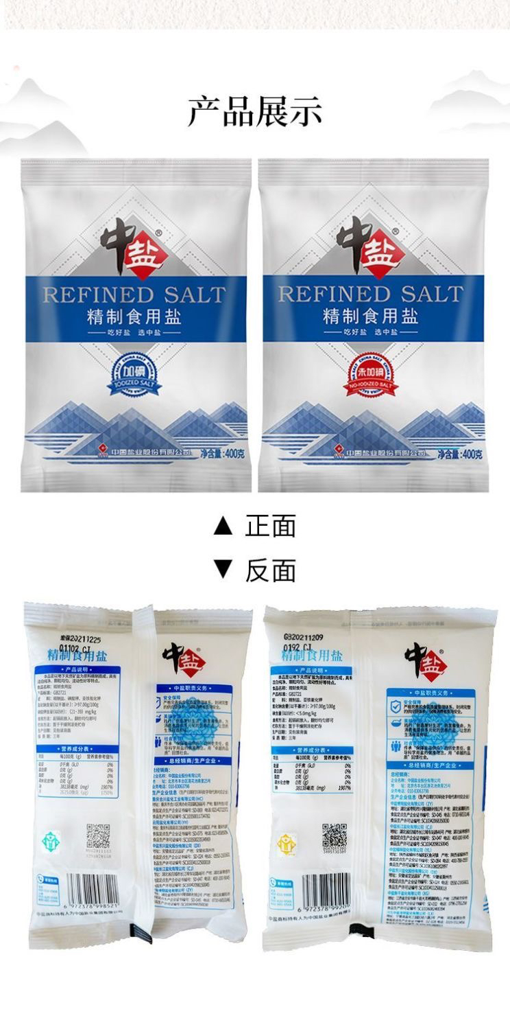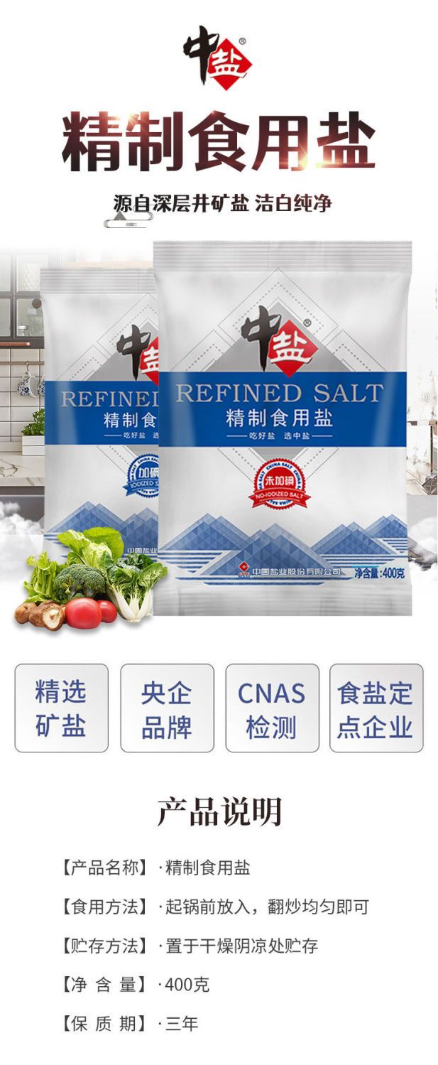 中盐精制食用盐408克