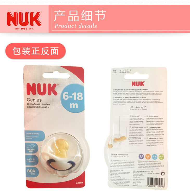 【保税仓】NUK 天才系列乳胶安抚奶嘴 宽口径 6-18个月