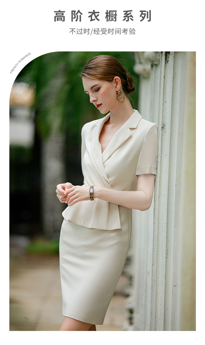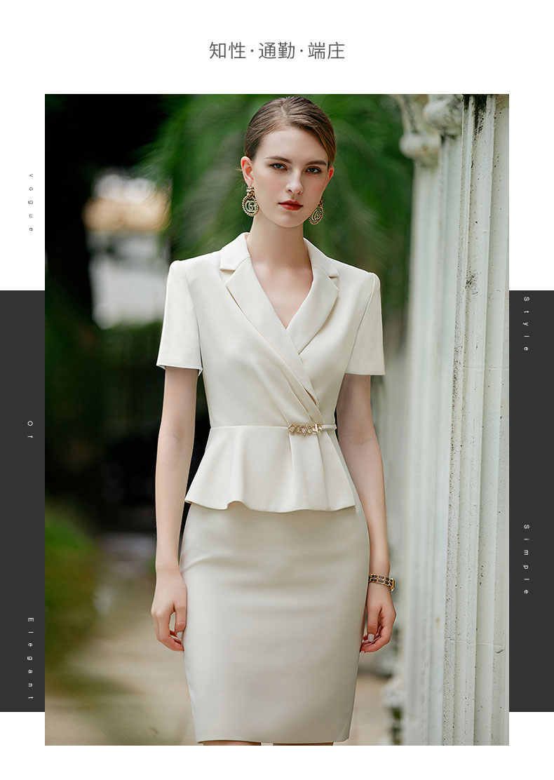 IWY/夏杏色短袖职业连衣裙女假两件薄款透气修身显瘦美容院工作服Q944