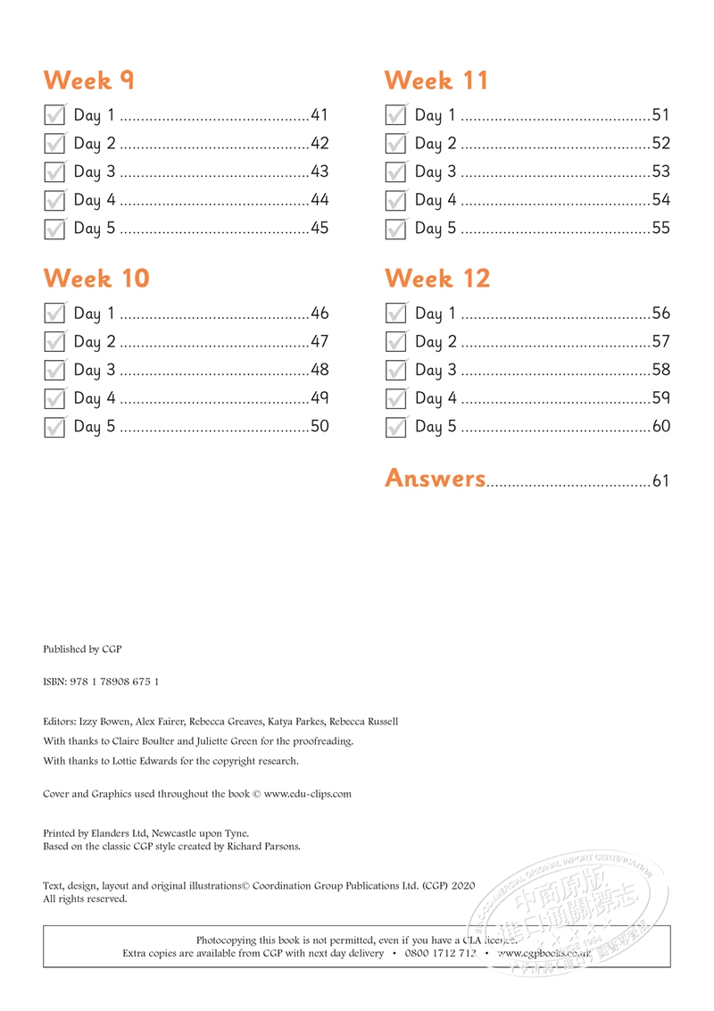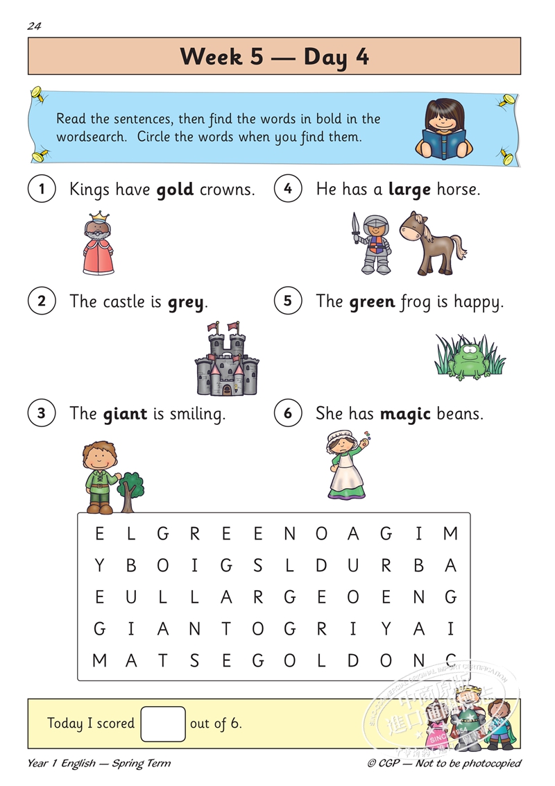 CGP New KS1 English Daily Practice Book 每日英语练习套装 1年级 单词+标点+语法+篇章阅读 5-6岁