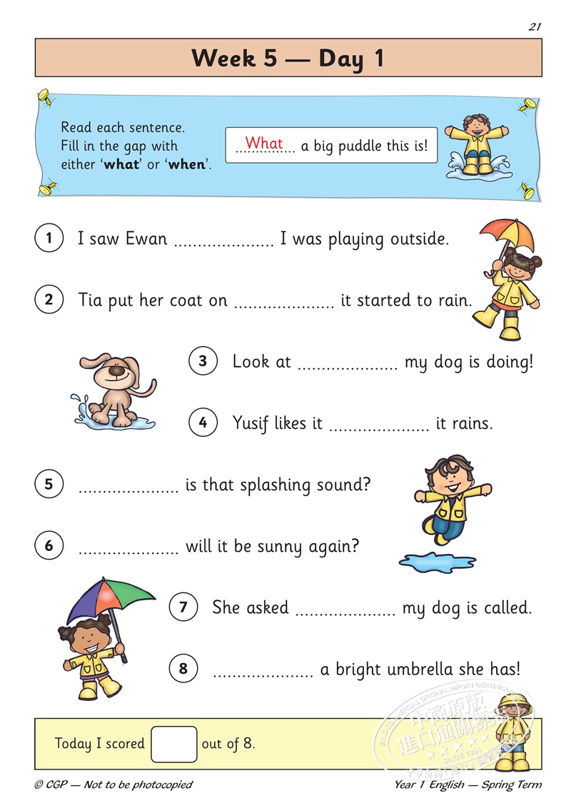 这套New KS1 English Daily Practice Book就能化解这个矛盾,它的练习形式生动有趣,插画丰富多彩,形象活泼可爱,让孩子每天都能沉浸在英语学习的快乐中。