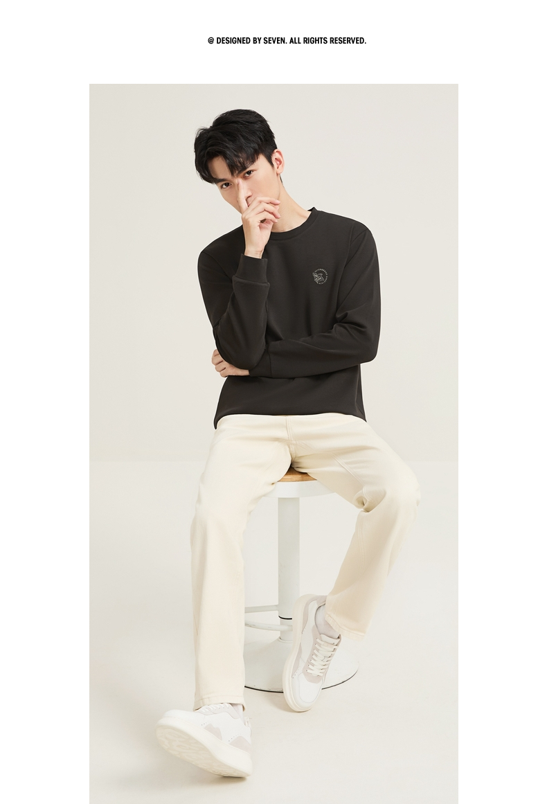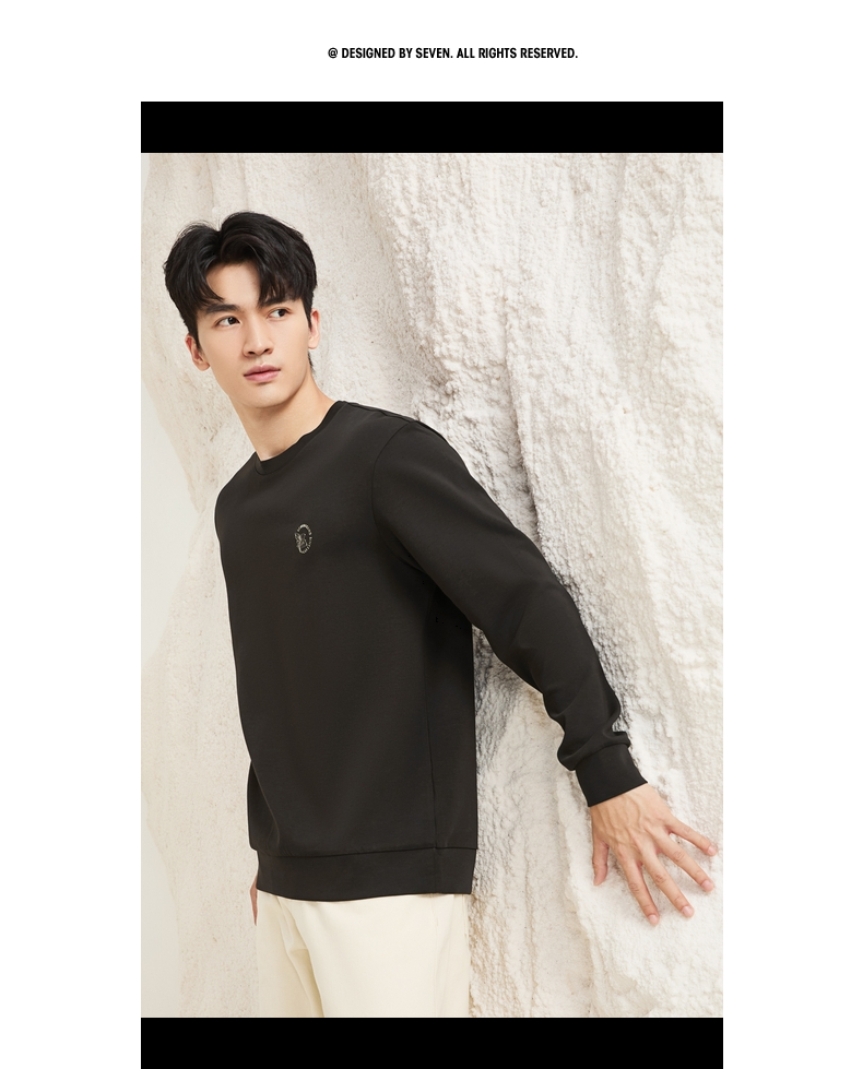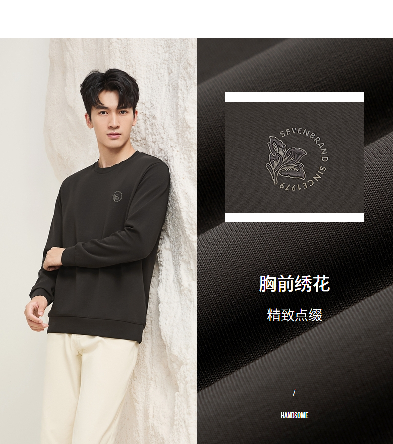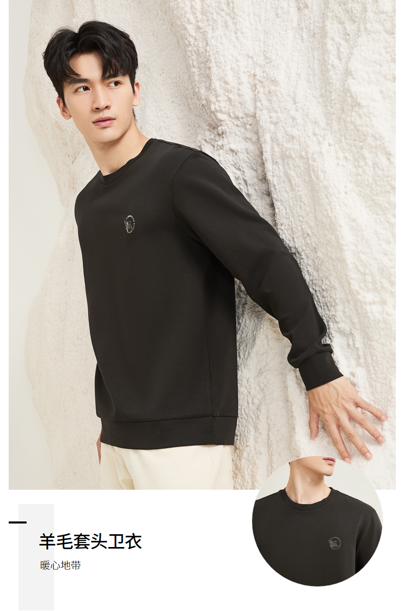 【莫代尔/含羊毛】柒牌卫衣秋季时尚青年休闲圆领百搭长袖上衣男129W70400