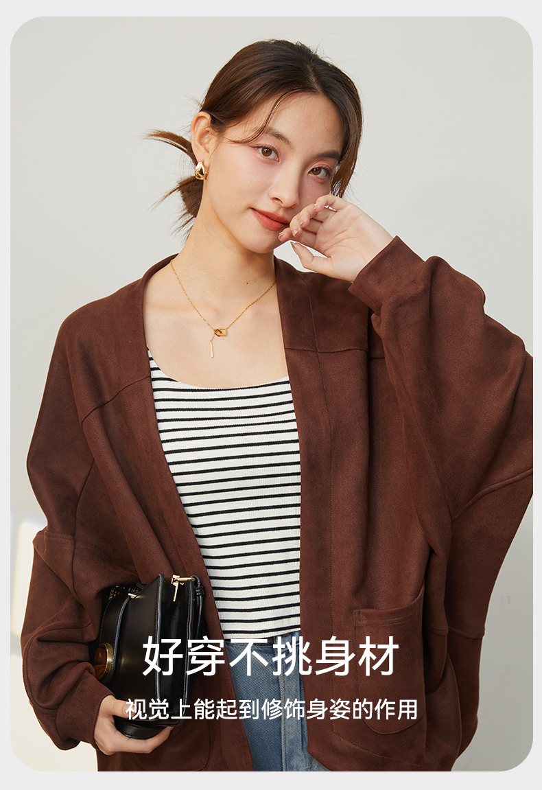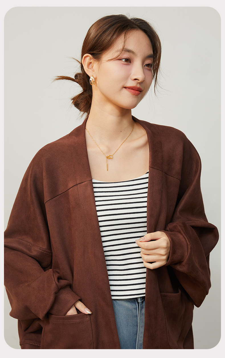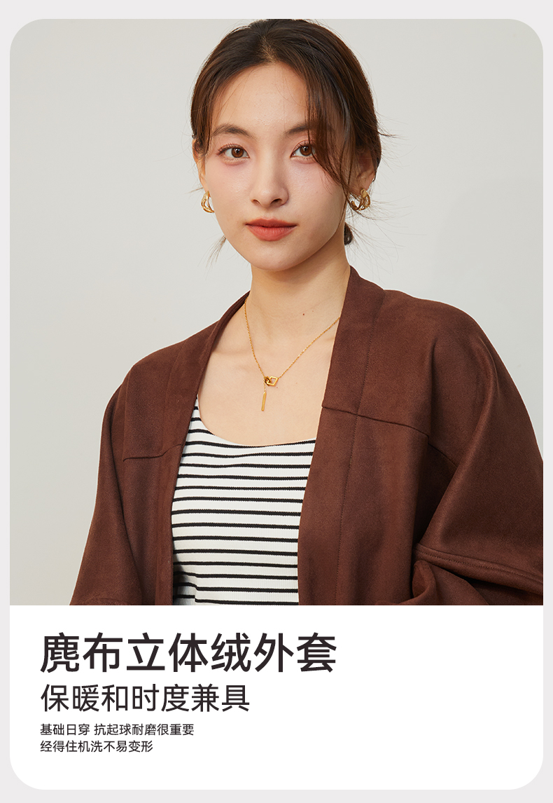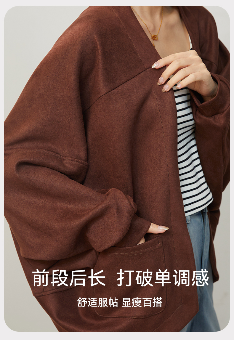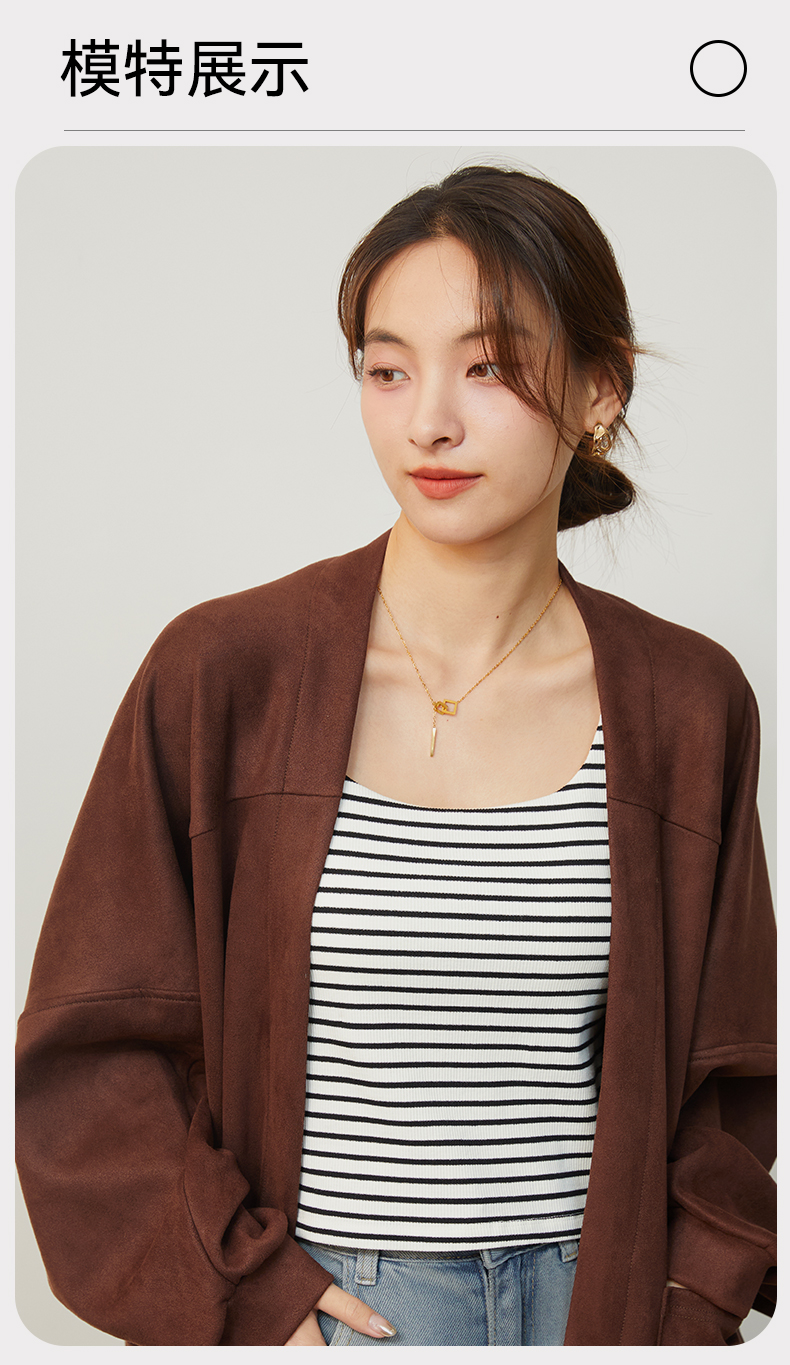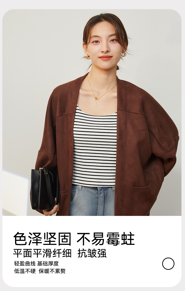 2025新款复古麂皮绒感短款外套秋冬小个子气质高级感开衫上衣