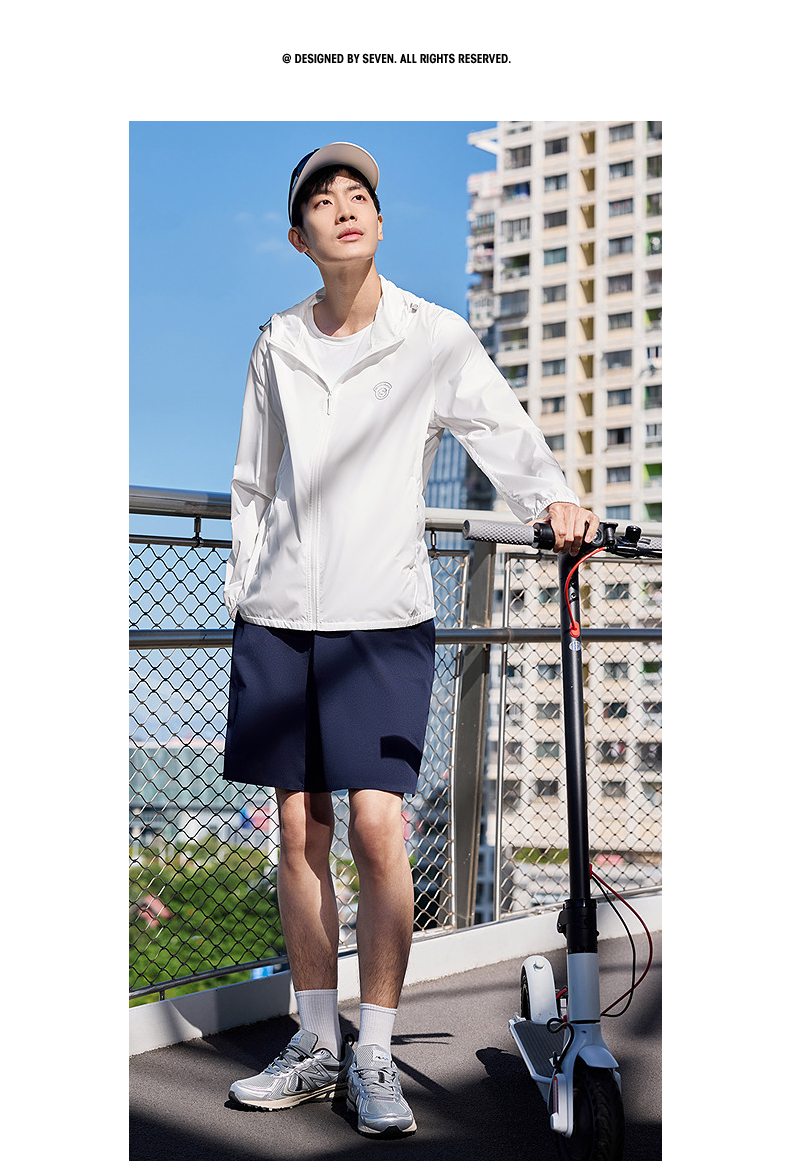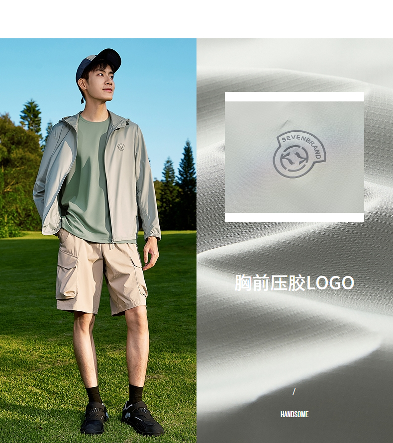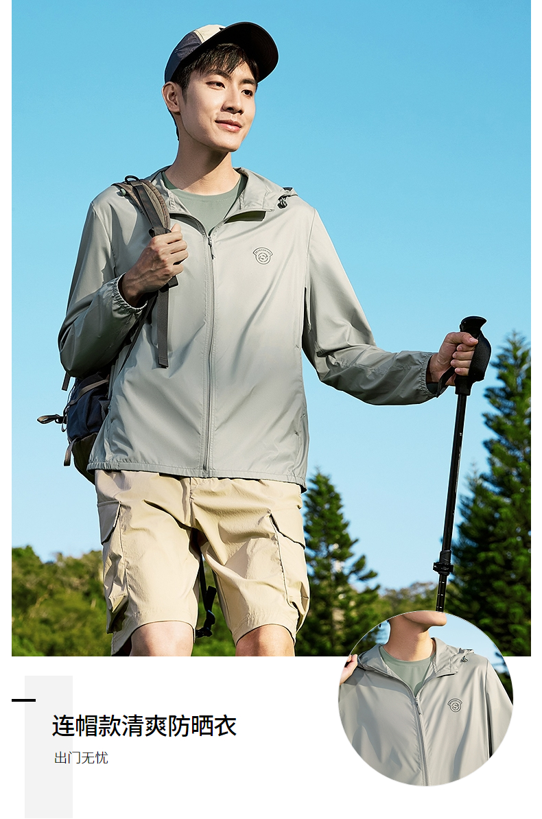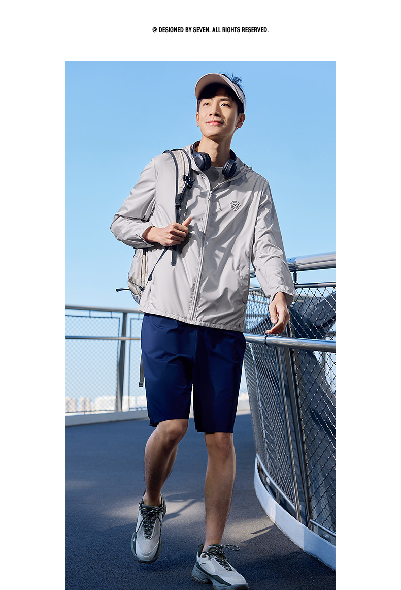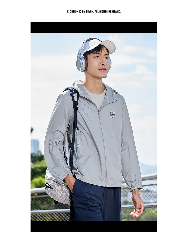 柒牌防晒衣男夏季新款防紫外线暗格纹提花防晒服户外休闲连帽外套128K71230