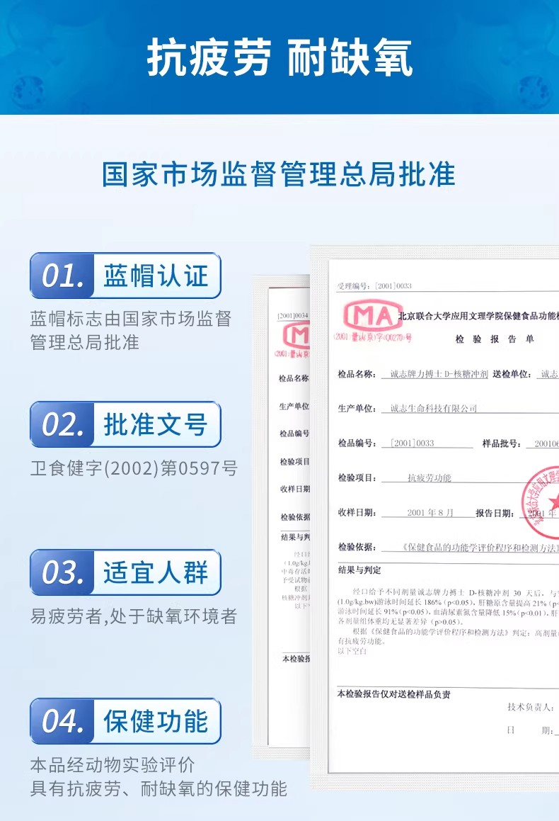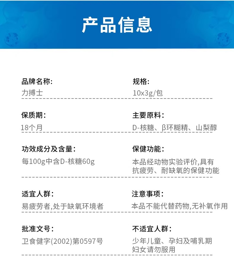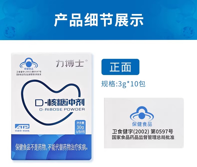 力搏士D-核糖冲剂抗疲劳中老年耐缺氧蓝帽子保健品 30g*1盒
