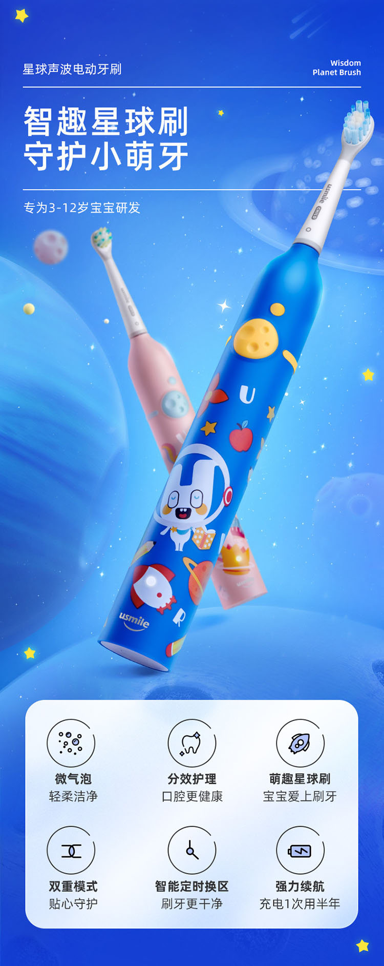 usmile星球声波电动牙刷Q3星际蓝【赠usmile牙线*1盒】