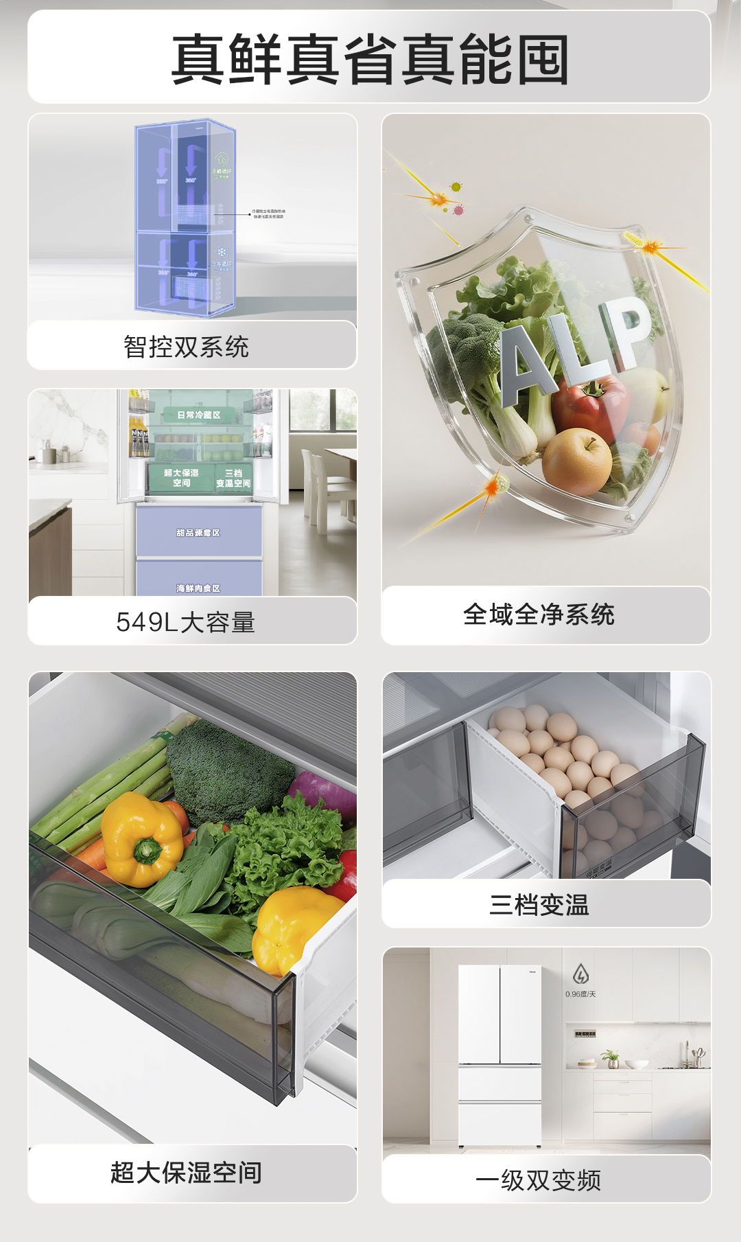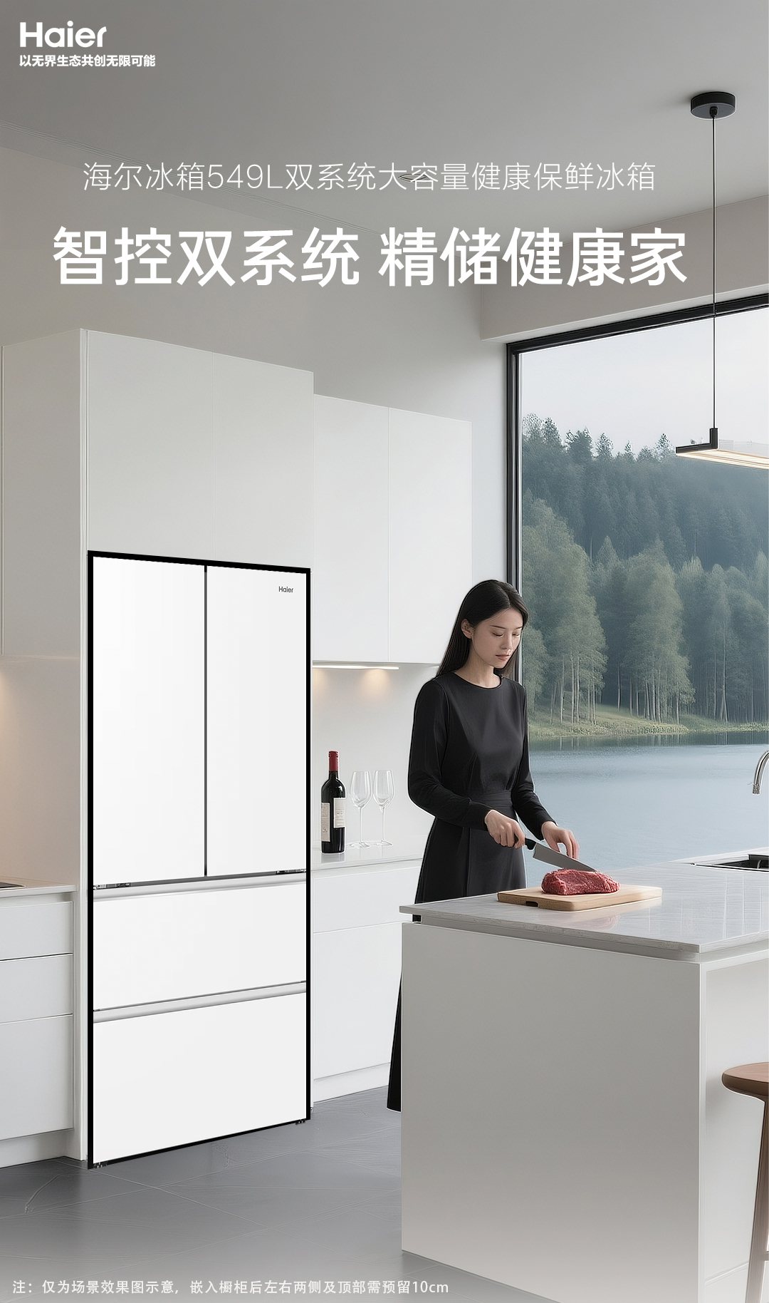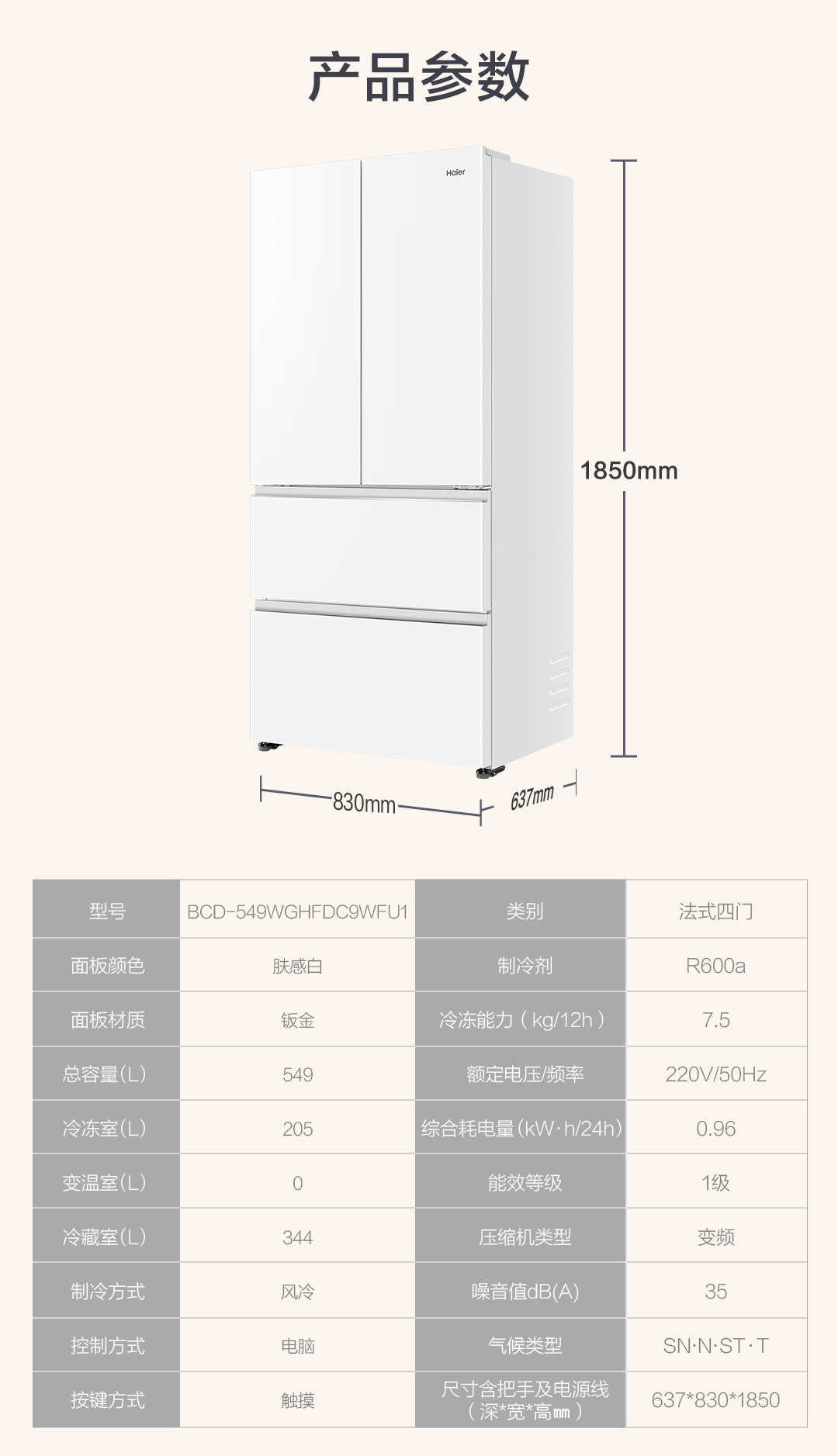 【双系统】海尔小红花549L法式多开门大容量制冰风冷无霜家用冰箱BCD-549WGHFDC9WFU1 549L肤感白
