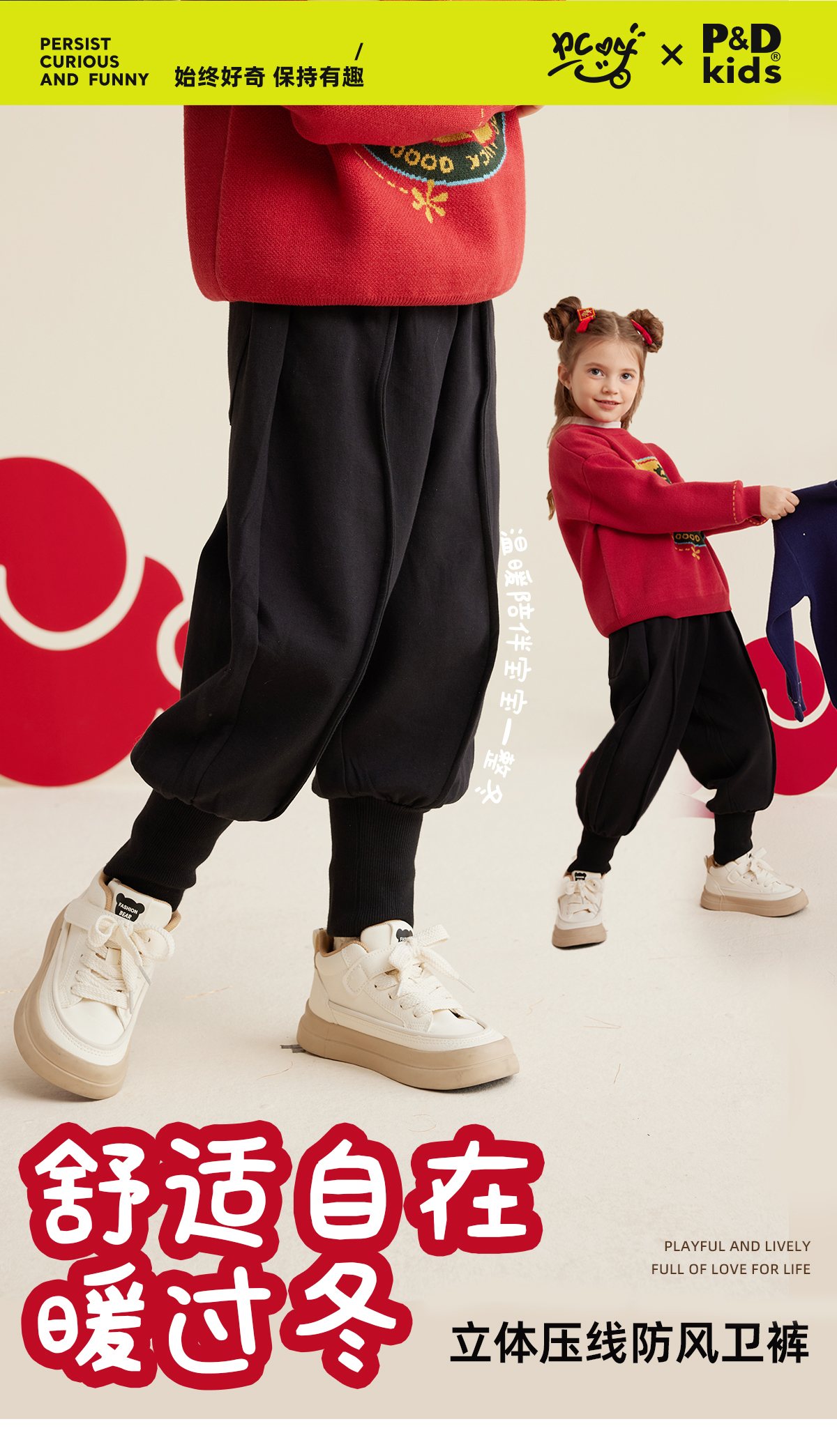 【秋冬上新】【冬日行走的小暖裤 软糯厚实】儿童立体压线防风卫裤PDK2311