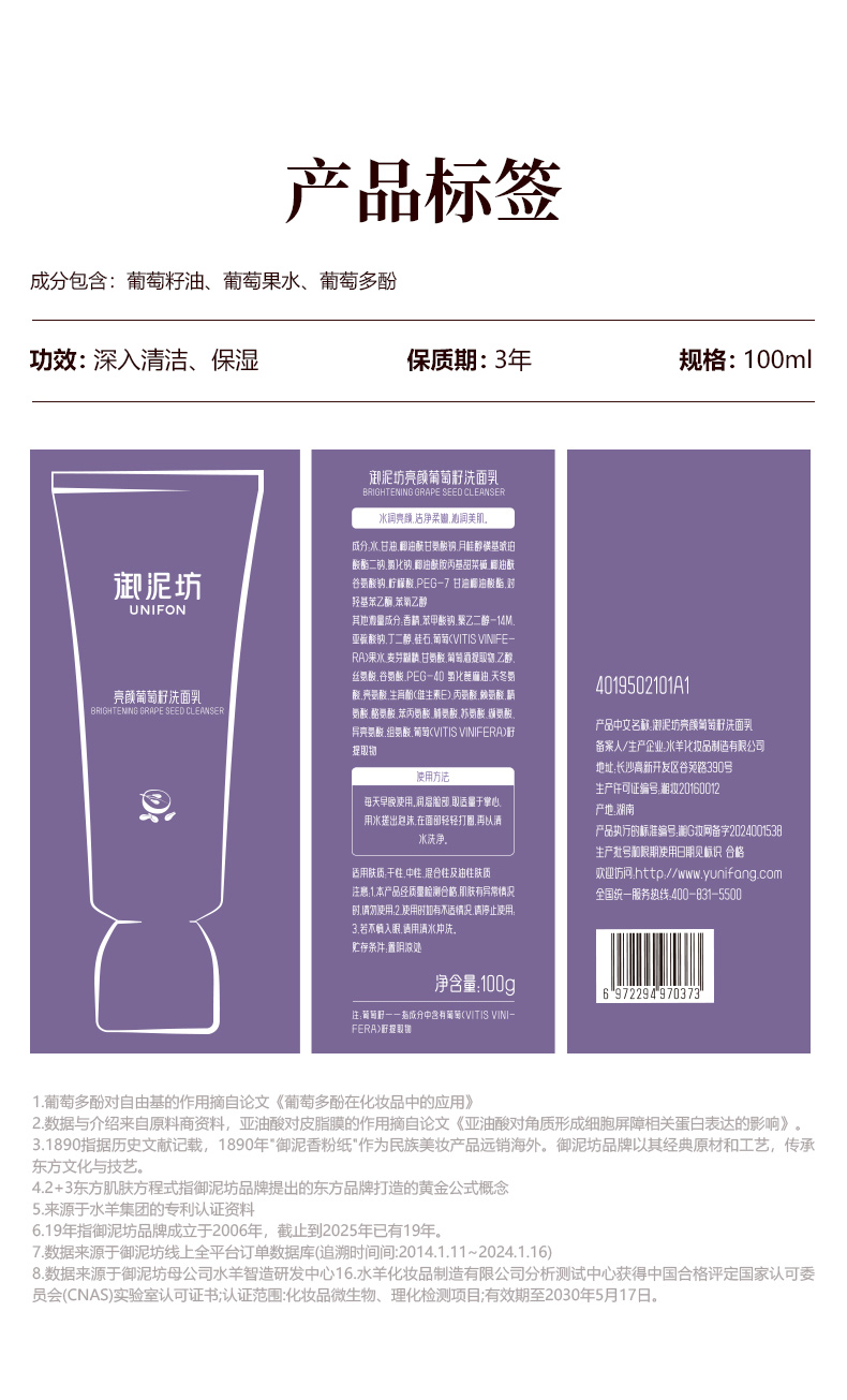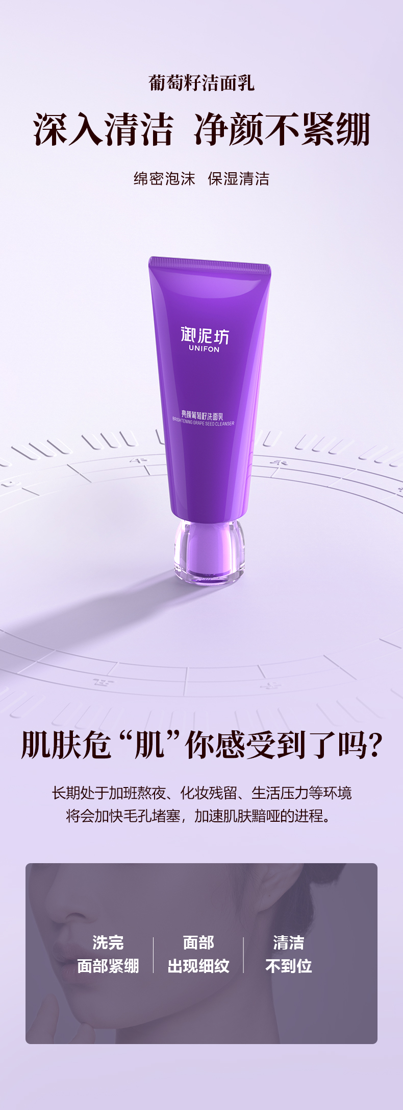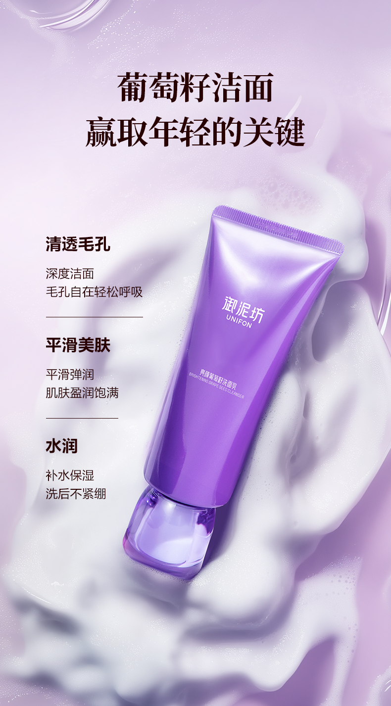 【品牌补贴39.9元2支装】御泥坊葡萄籽洁面乳清洁保湿100g/支