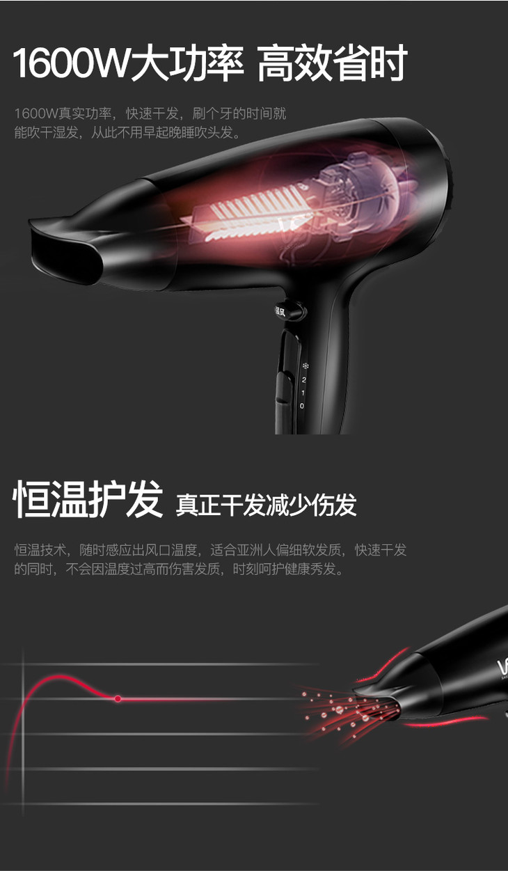 沙宣(VS)电吹风机家用 大功率强风吹风筒VS9142BCN (1600W)