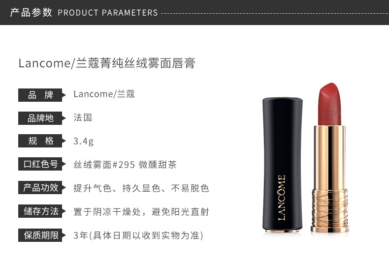 LANCOME/兰蔻 菁纯非凡哑光唇膏 #295 小蛮腰 3.4G