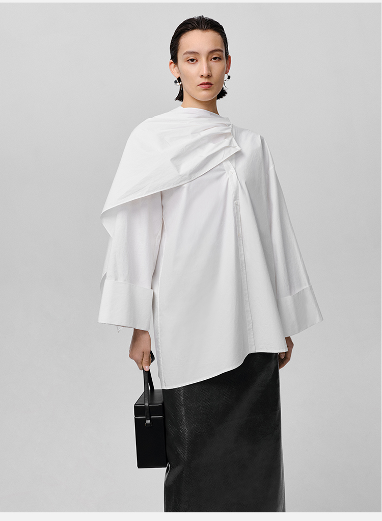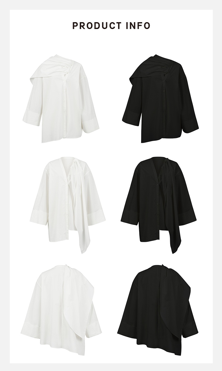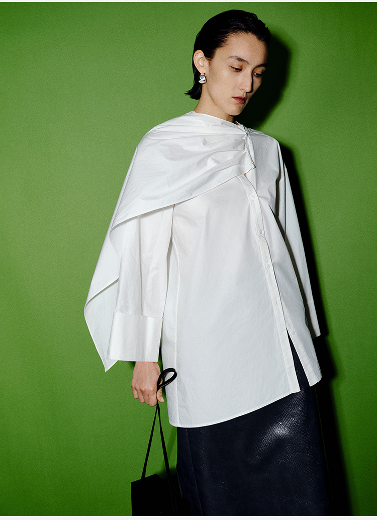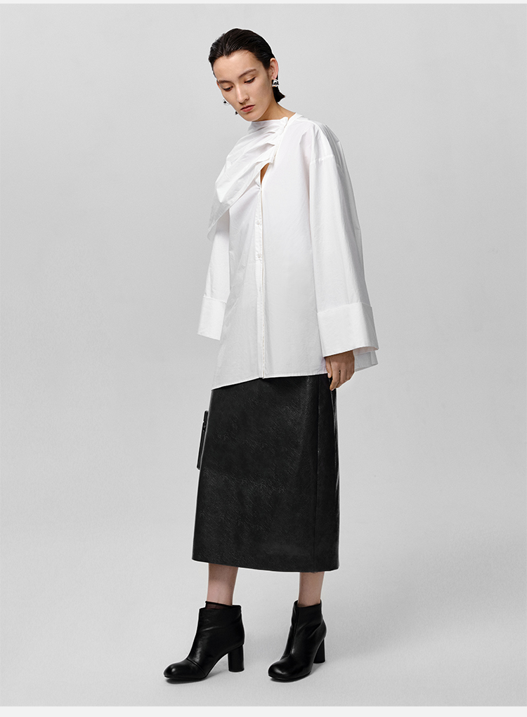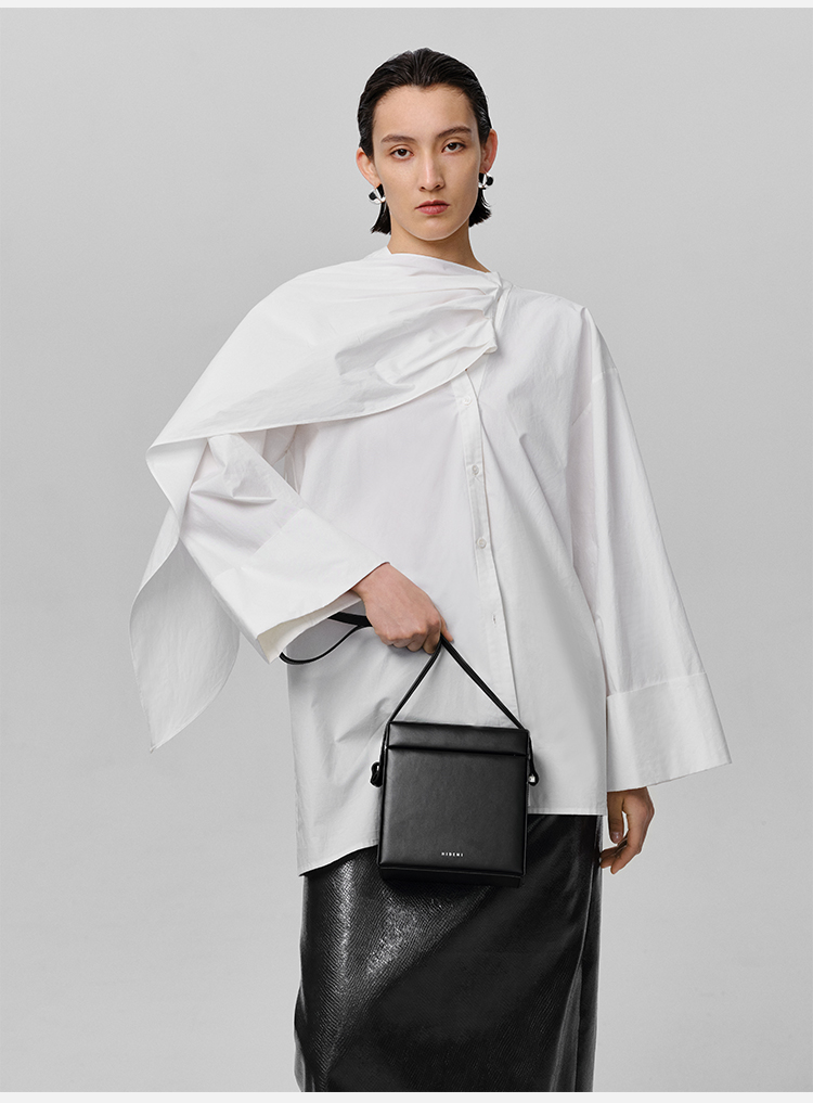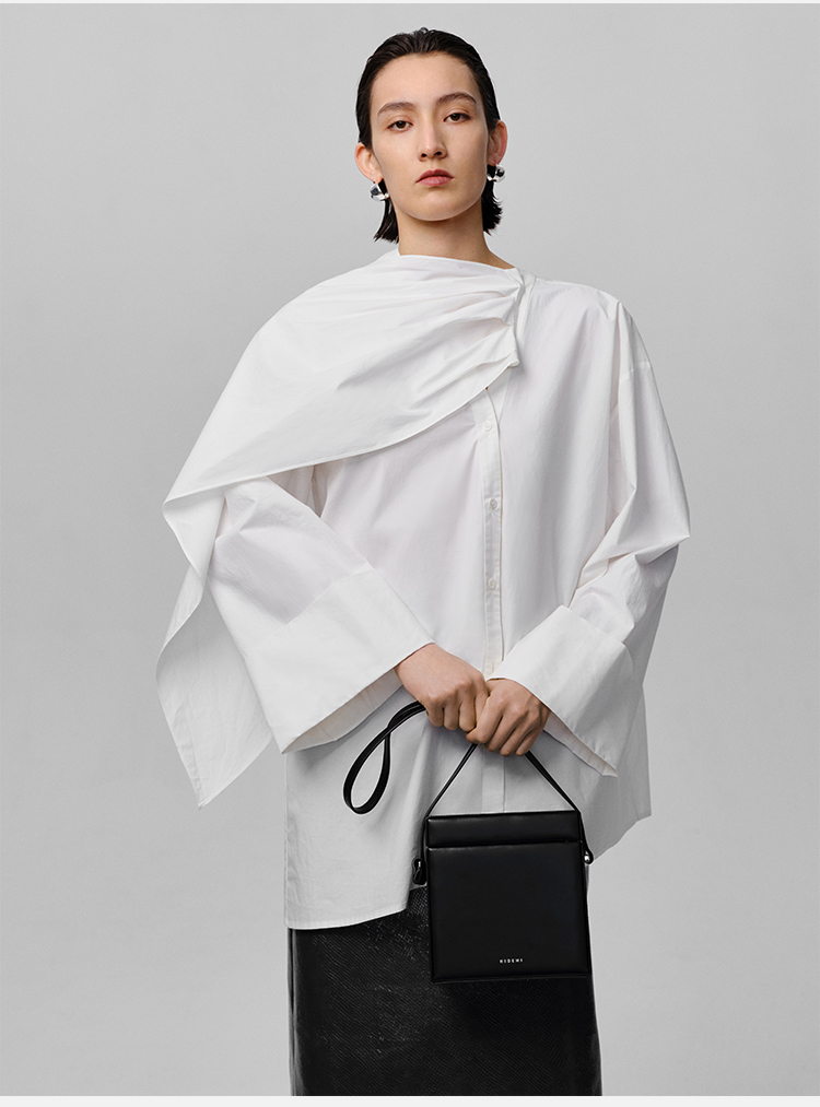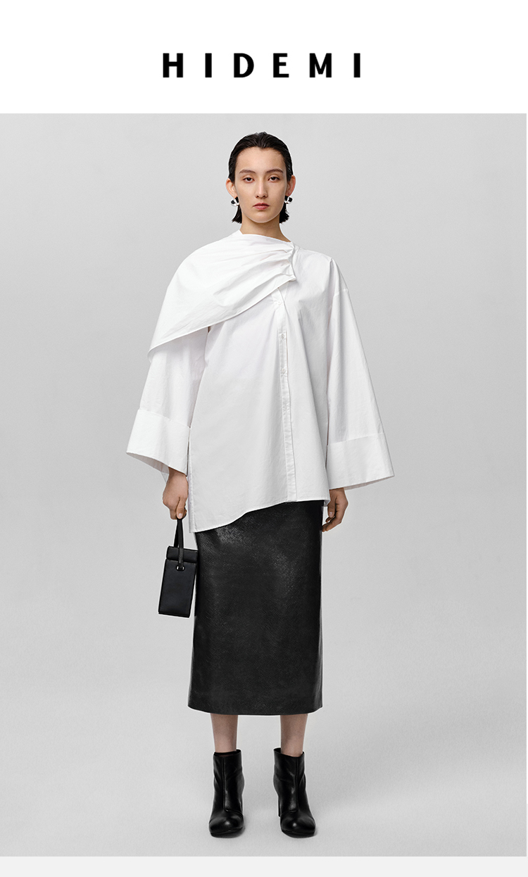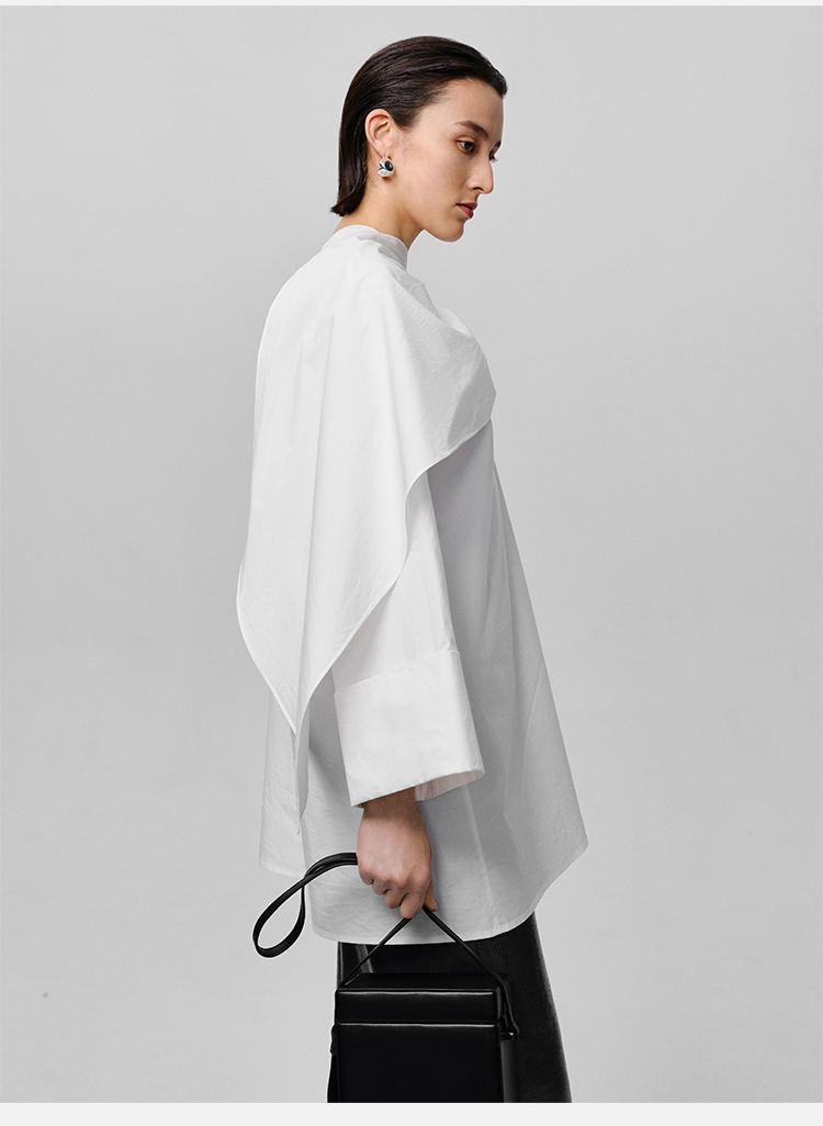 HIDEMI 极简多穿可拆卸围巾式纽扣廓形衬衫 白色/黑色