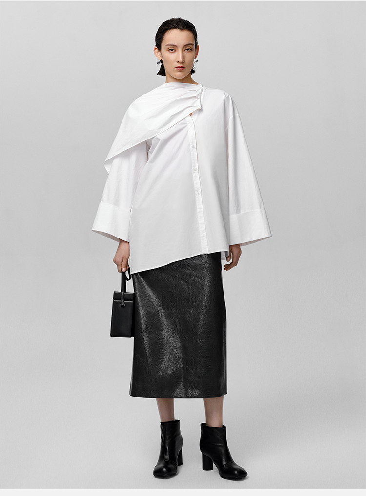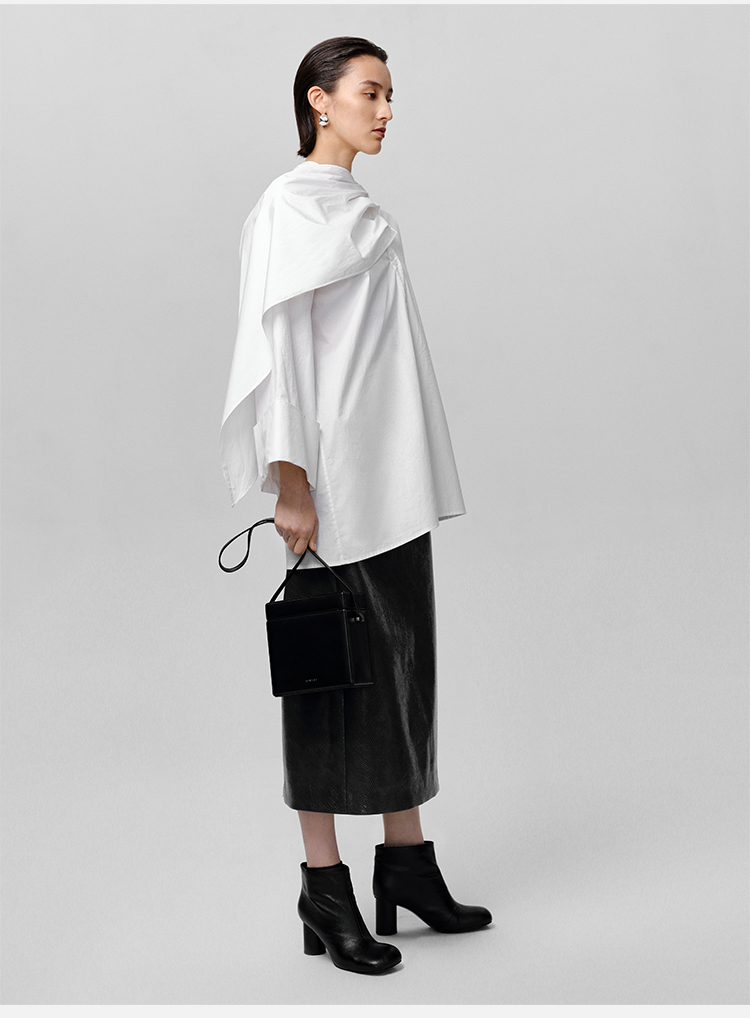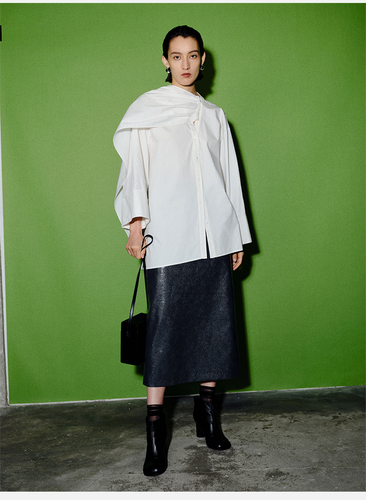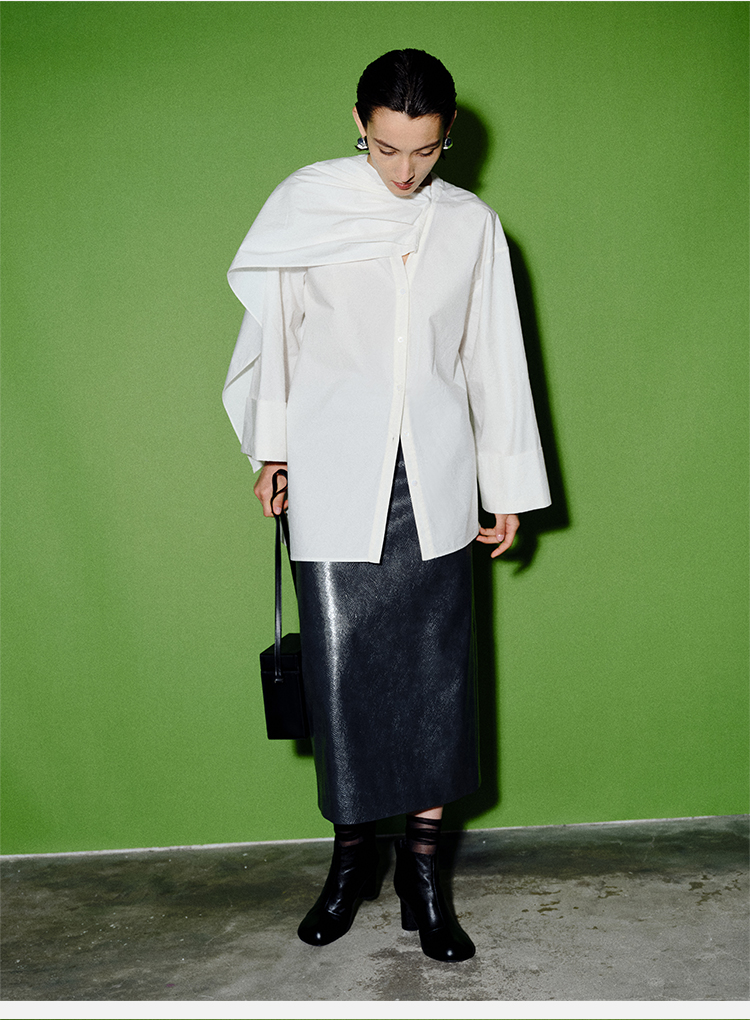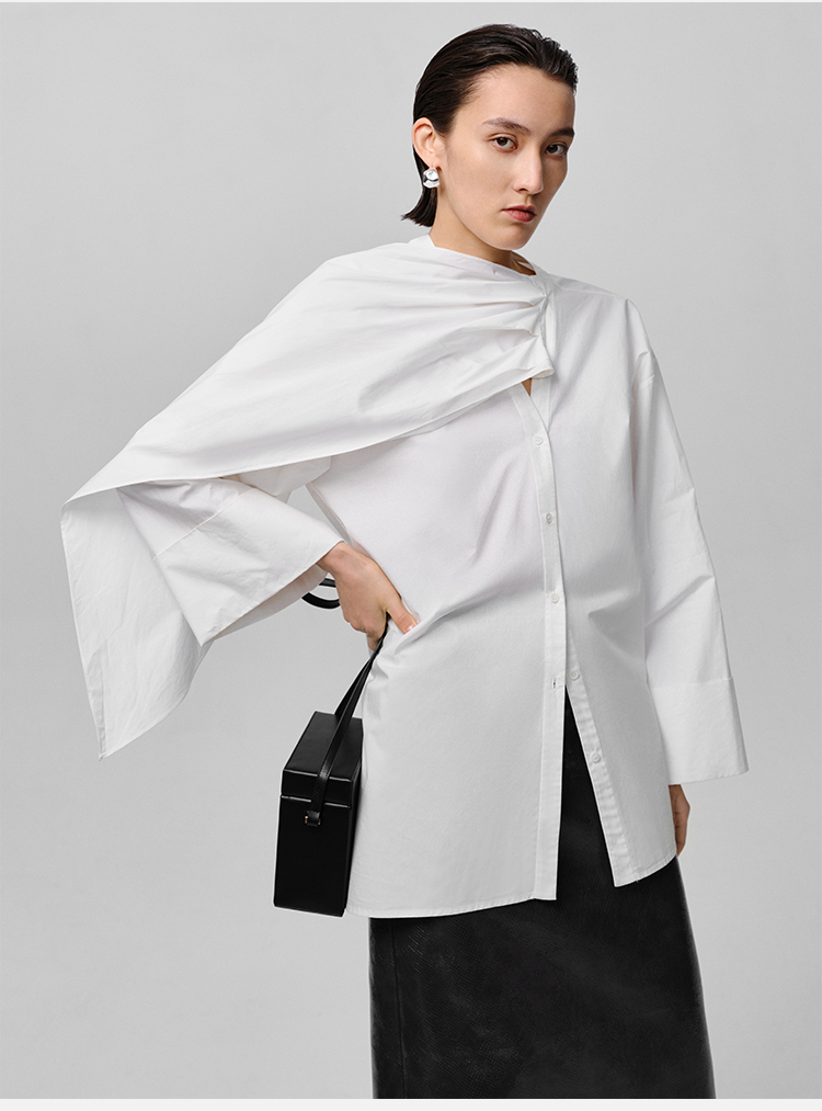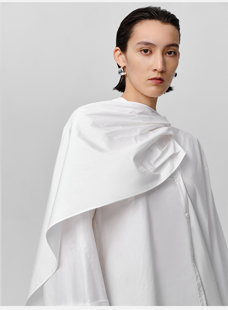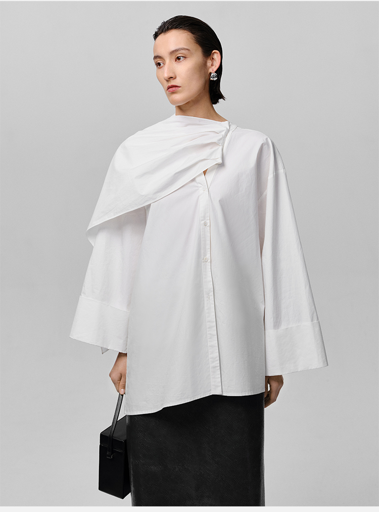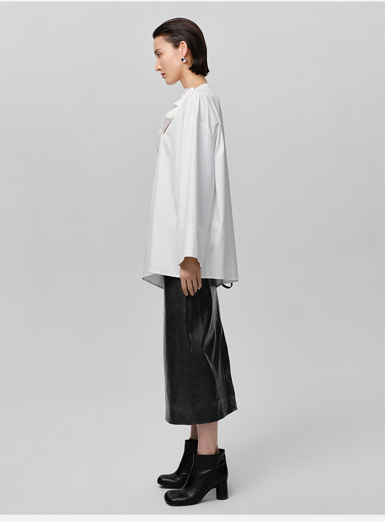 HIDEMI 极简多穿可拆卸围巾式纽扣廓形衬衫 白色/黑色