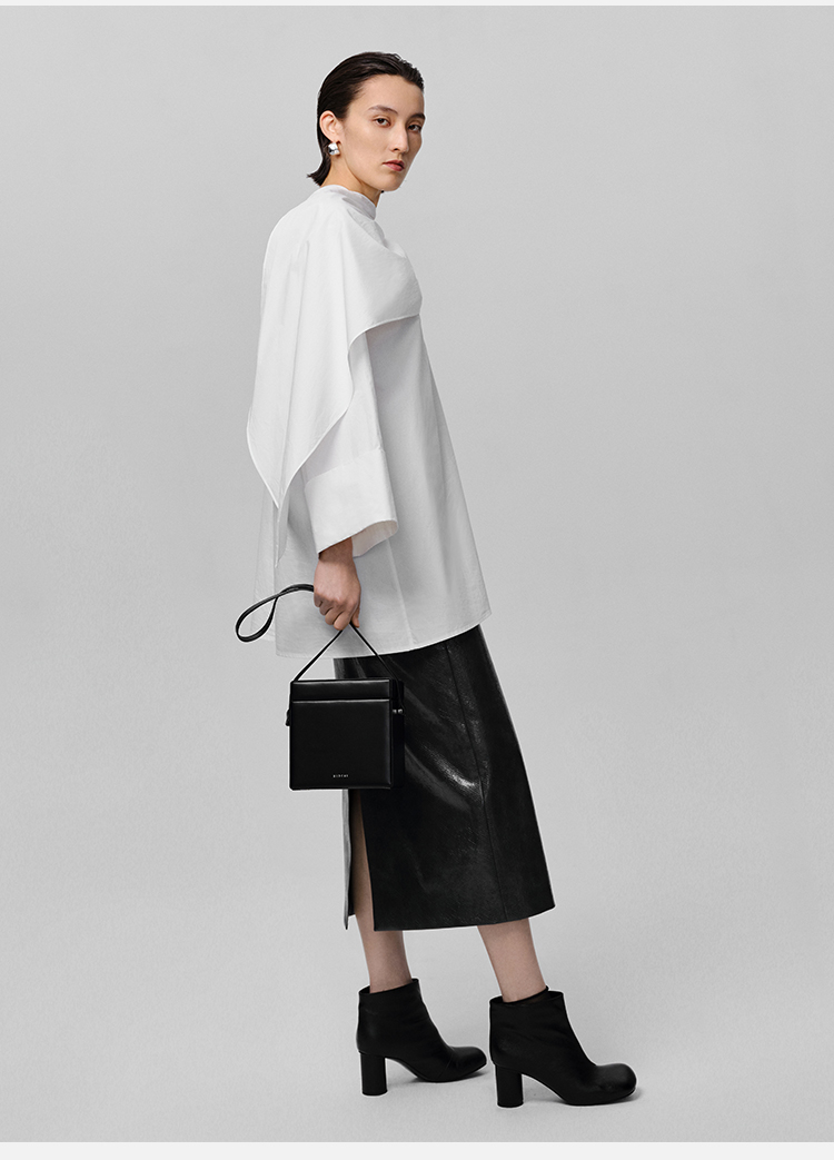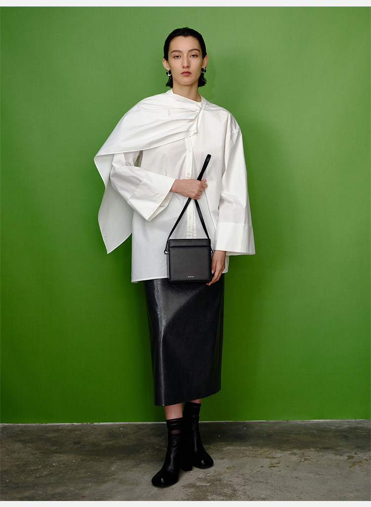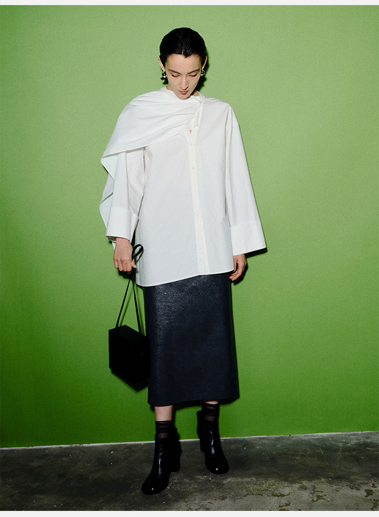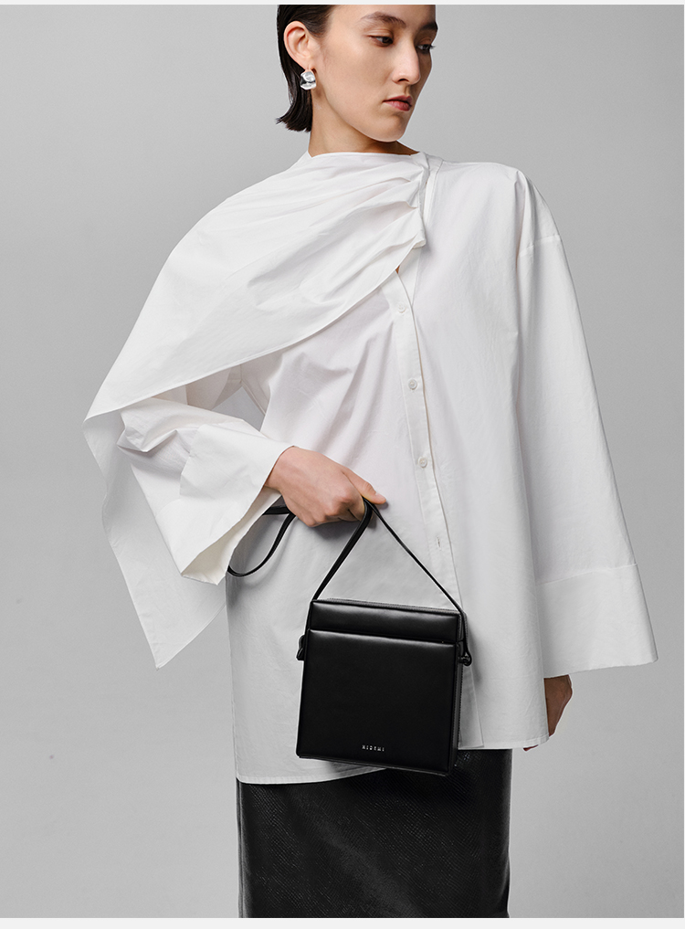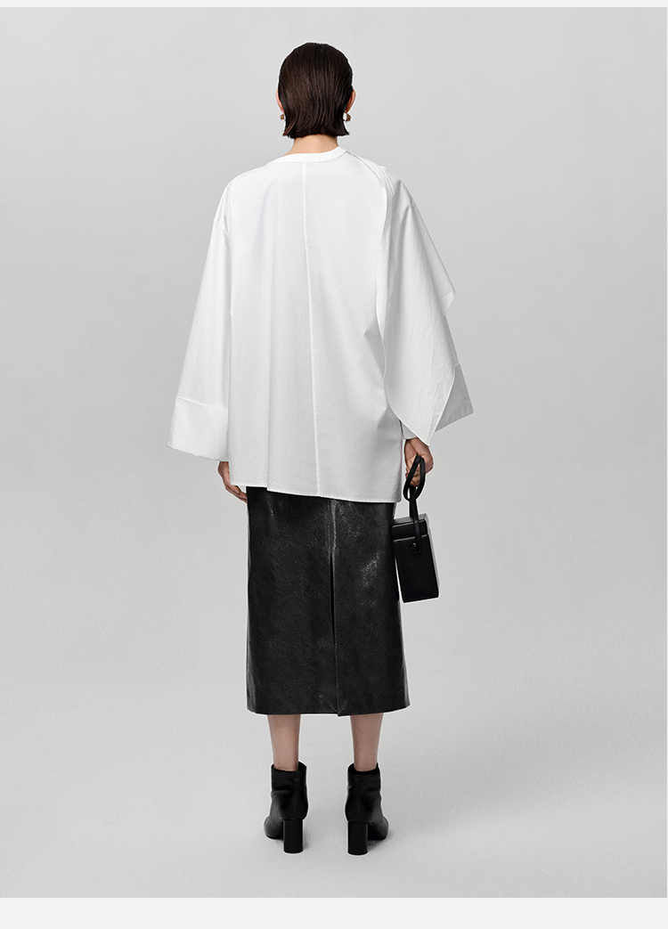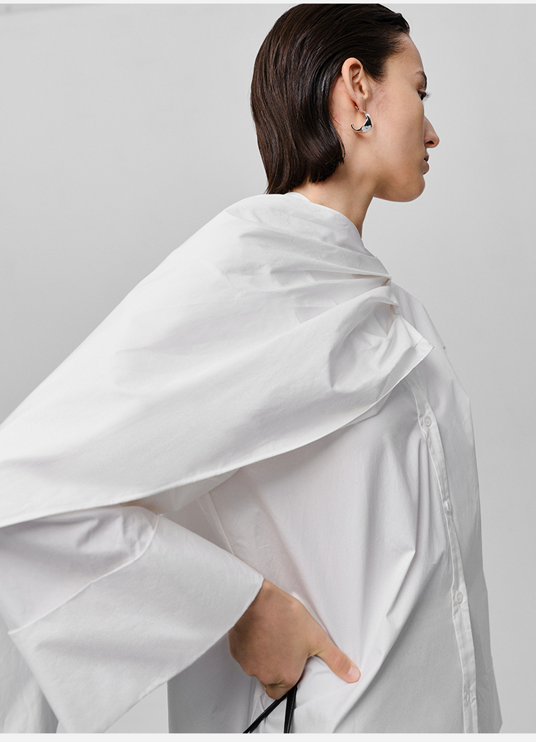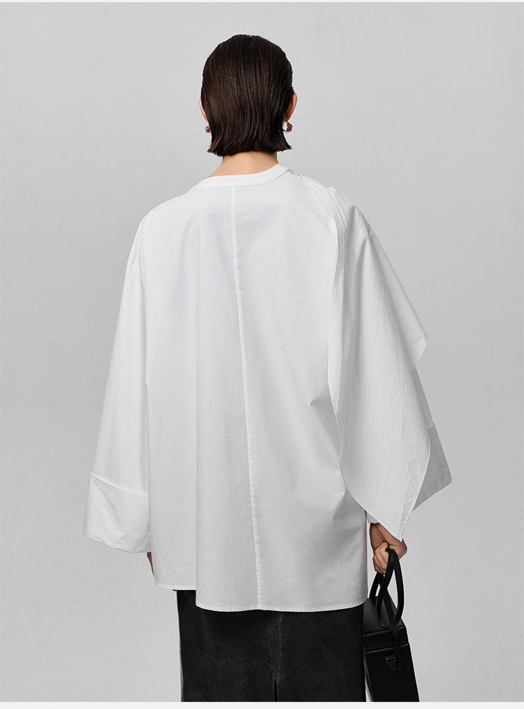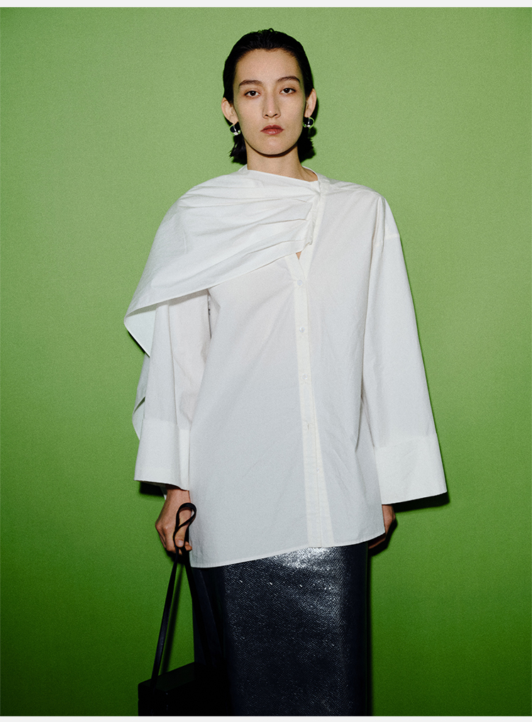 HIDEMI 极简多穿可拆卸围巾式纽扣廓形衬衫 白色/黑色