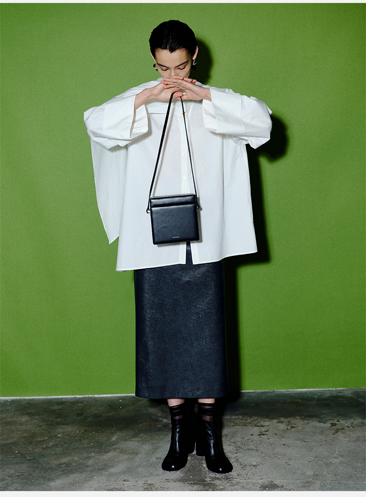 HIDEMI 美利奴羊毛简约设计感茧型套装 半高领毛衣/茧型半身裙