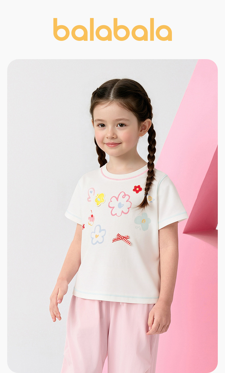 【balaOne】巴拉巴拉童装儿童短袖t恤2026新款夏女童纯棉针织上衣