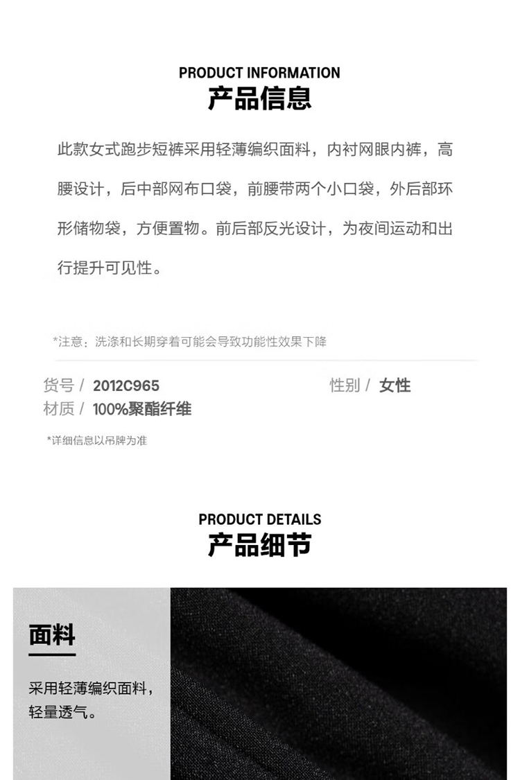 ASICS亚瑟士 女款反光夜视跑步短裤