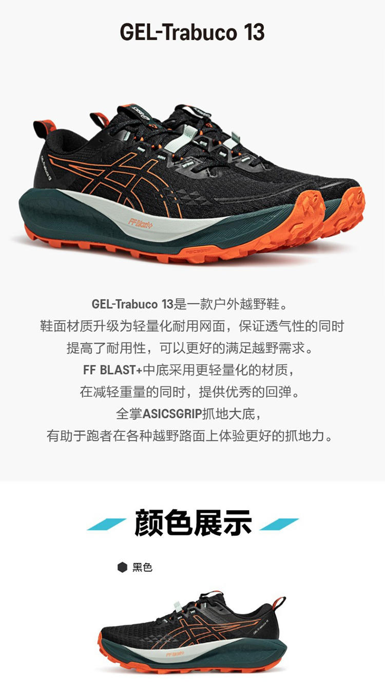 ASICS亚瑟士 GEL-TRABUCO 13 男女款抓地耐磨透气运动跑步越野鞋