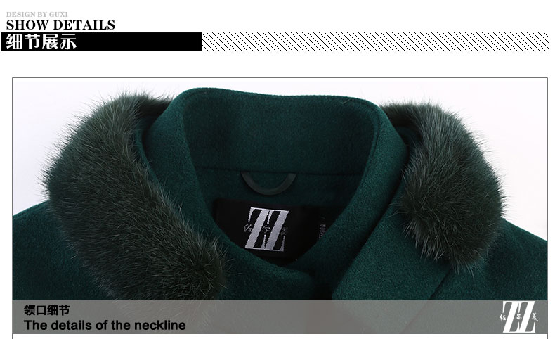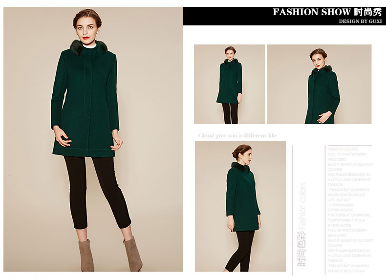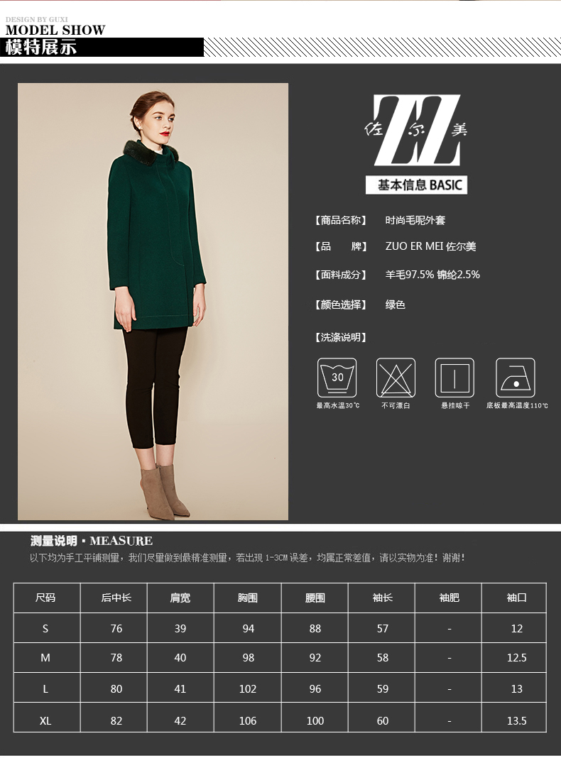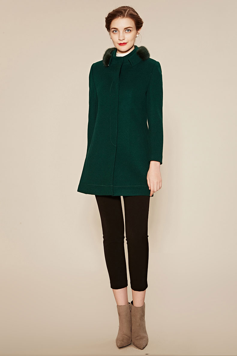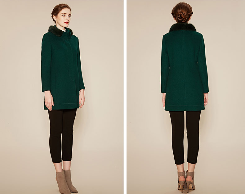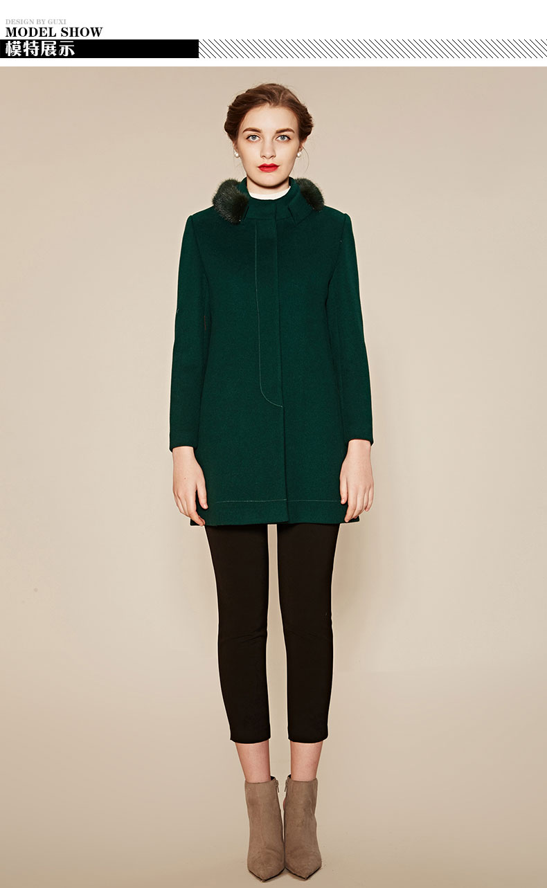 佐尔美冬季新款羊毛呢外套女中长款圆领毛领呢大衣E64ZO32