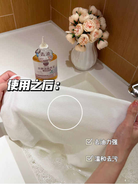 漏嘴星人一定要和它锁死~去油效果爱了 漏嘴的姐妹不管吃什么,总要给衣服也尝尝 于是衣服上就会经常出现各种各样的油渍 用洗洁精清洗可能还会留有一些印迹明 别慌🔥试试这去油王 先滴上几滴,静置一会后沾水简单揉搓油渍衣服就被去除干净对于漏嘴星人简直不要太友好的