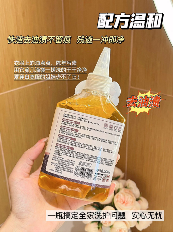 被同事追着问!白裤子去油真的太牛啦 爱穿白衣服的都看过来! 再也不怕火锅辣油滴身上 有了去油王真的太省心啦~ 滴几滴在脏的位置,污渍一搓就掉 白衣服染色、油渍、脏污 有它一瓶就能搞定啦~