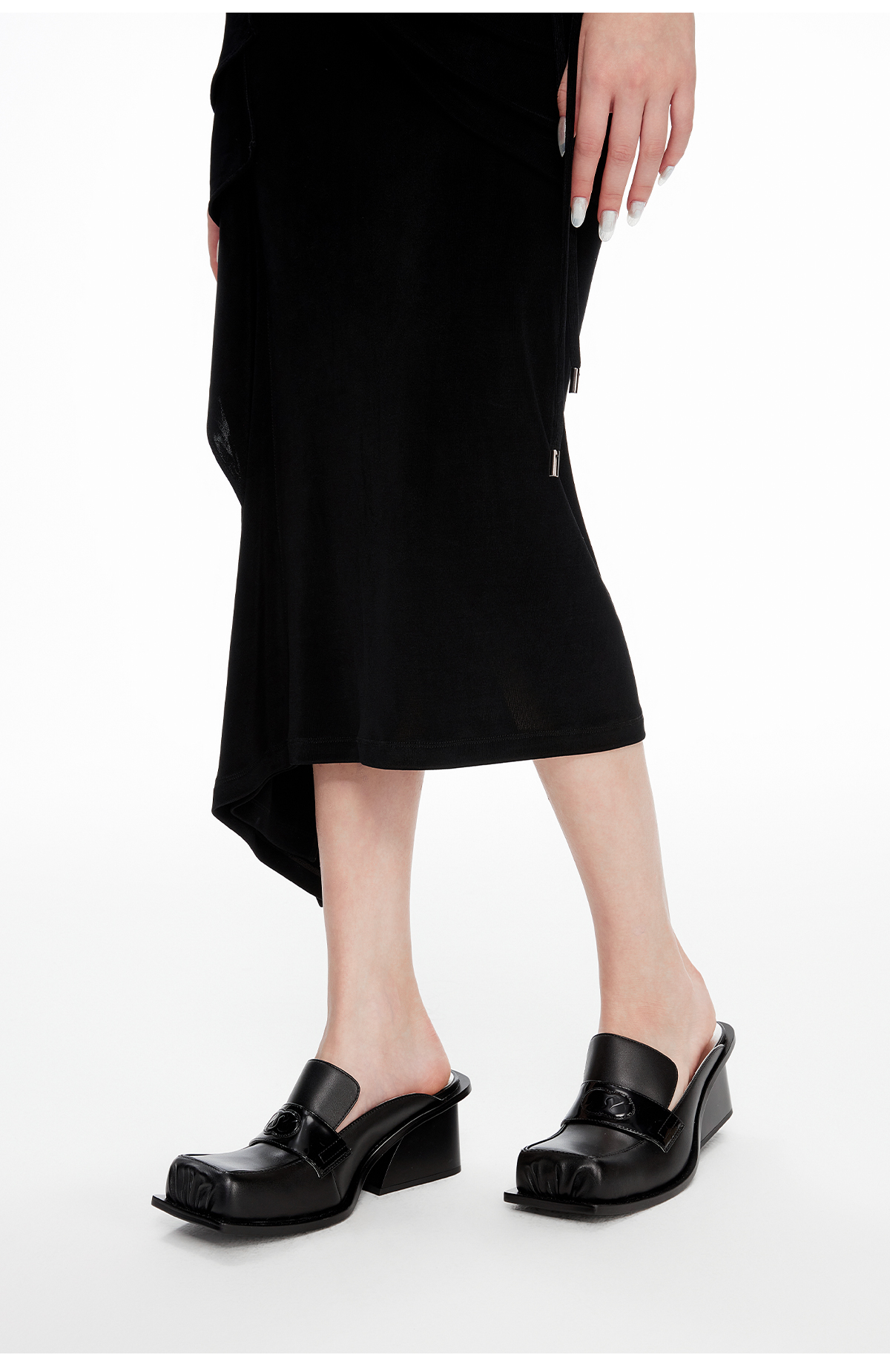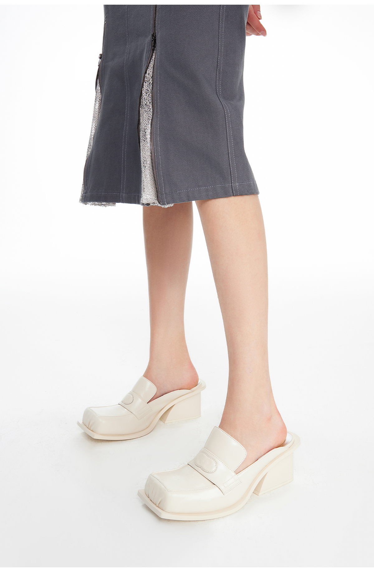 lost in echo2024春季新款设计师品牌翘方头沿条粗跟穆勒拖复古女