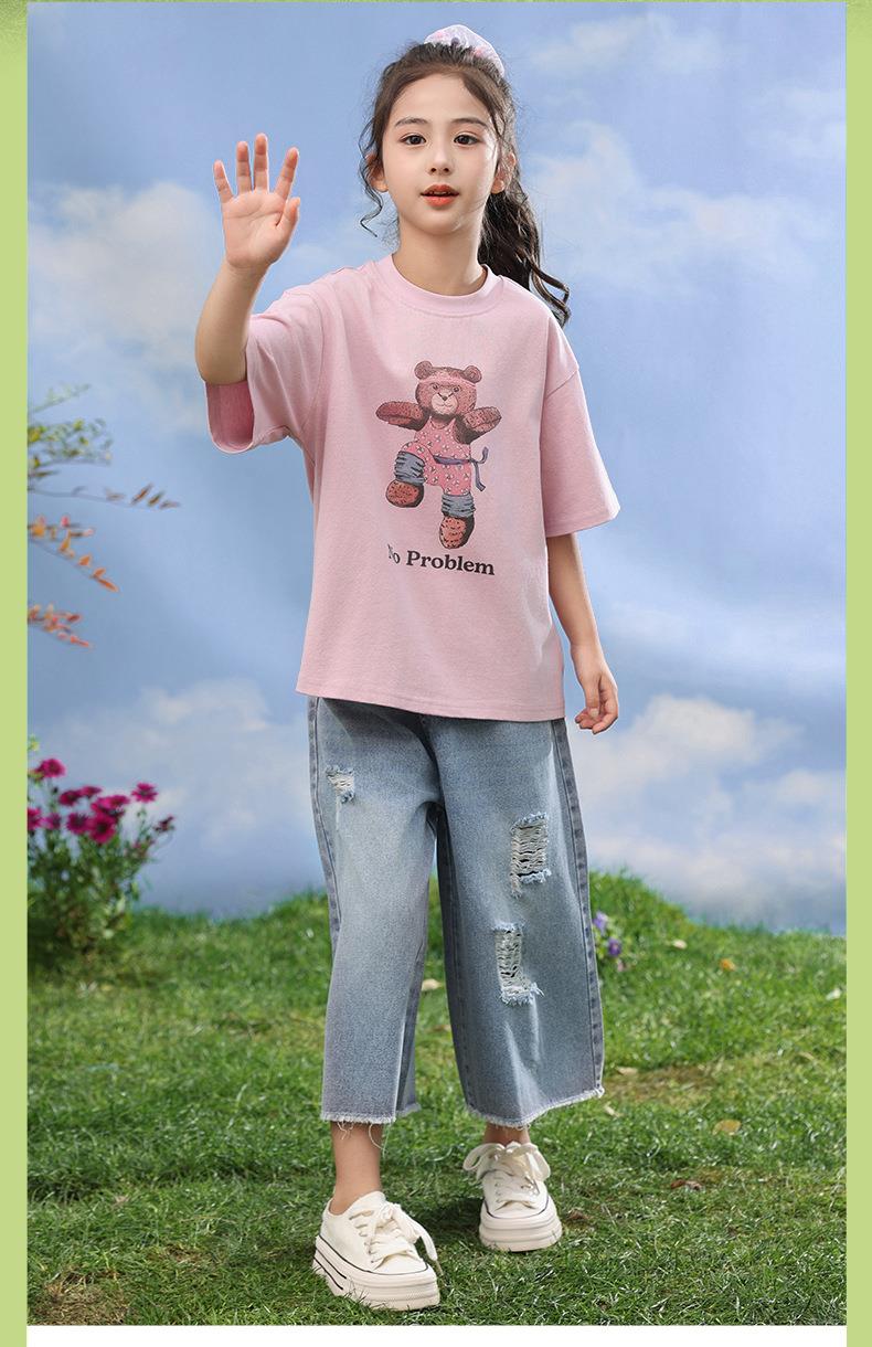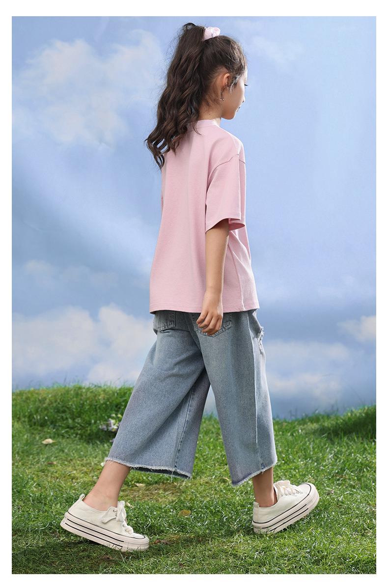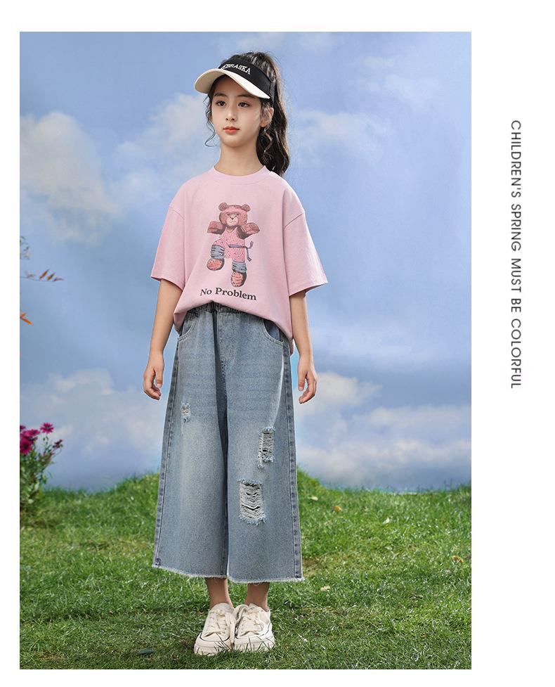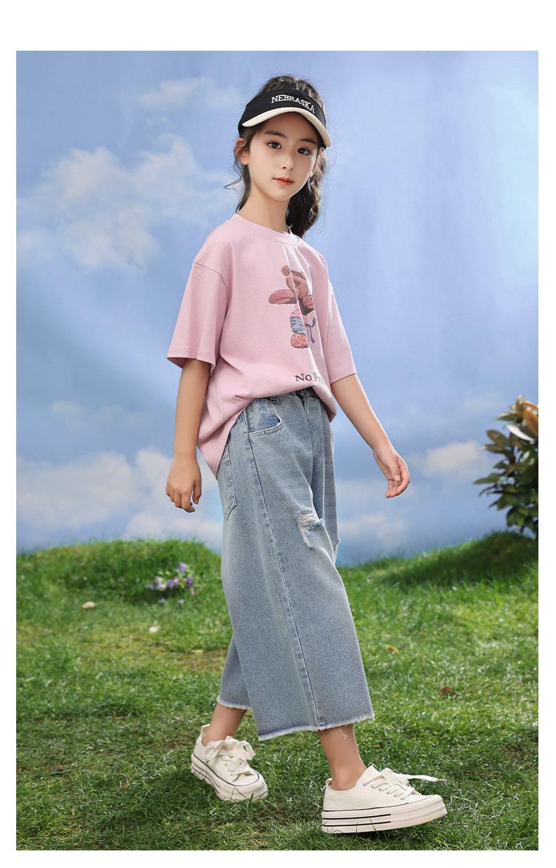 女童夏装2024新款短袖t恤纯棉夏款大童牛仔裤两件套儿童夏季套装