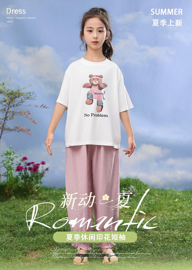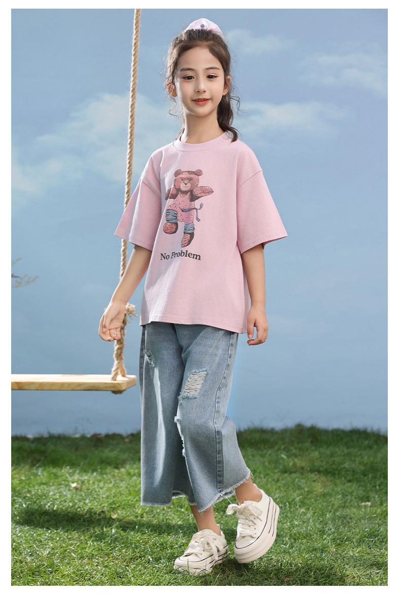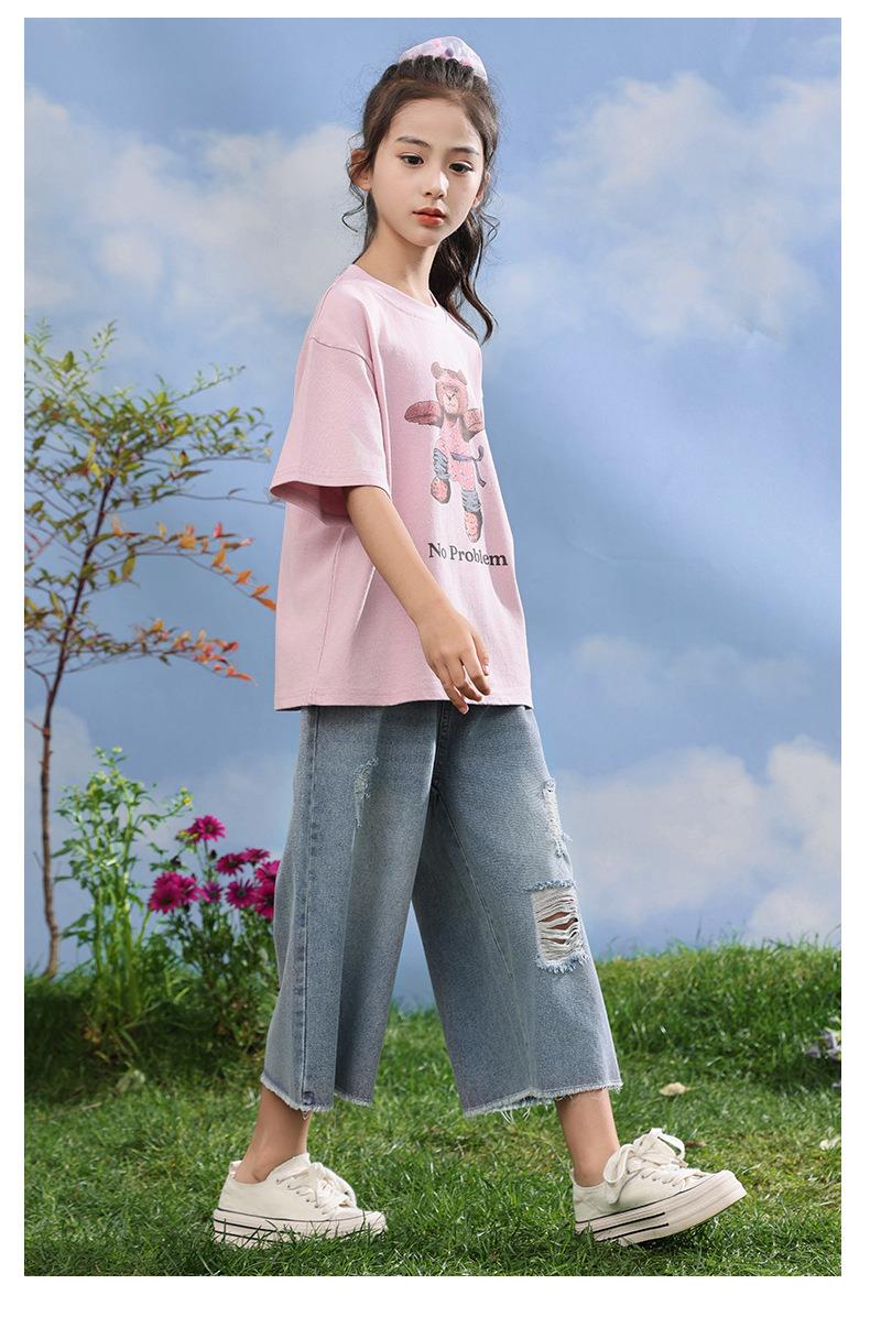 女童夏装2024新款短袖t恤纯棉夏款大童牛仔裤两件套儿童夏季套装