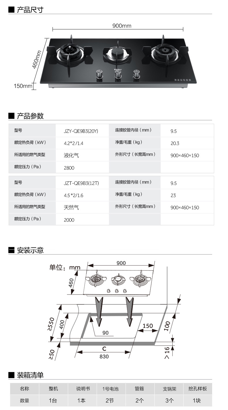 海尔(Haier)灶具 JZT-QE9B3(12T)
