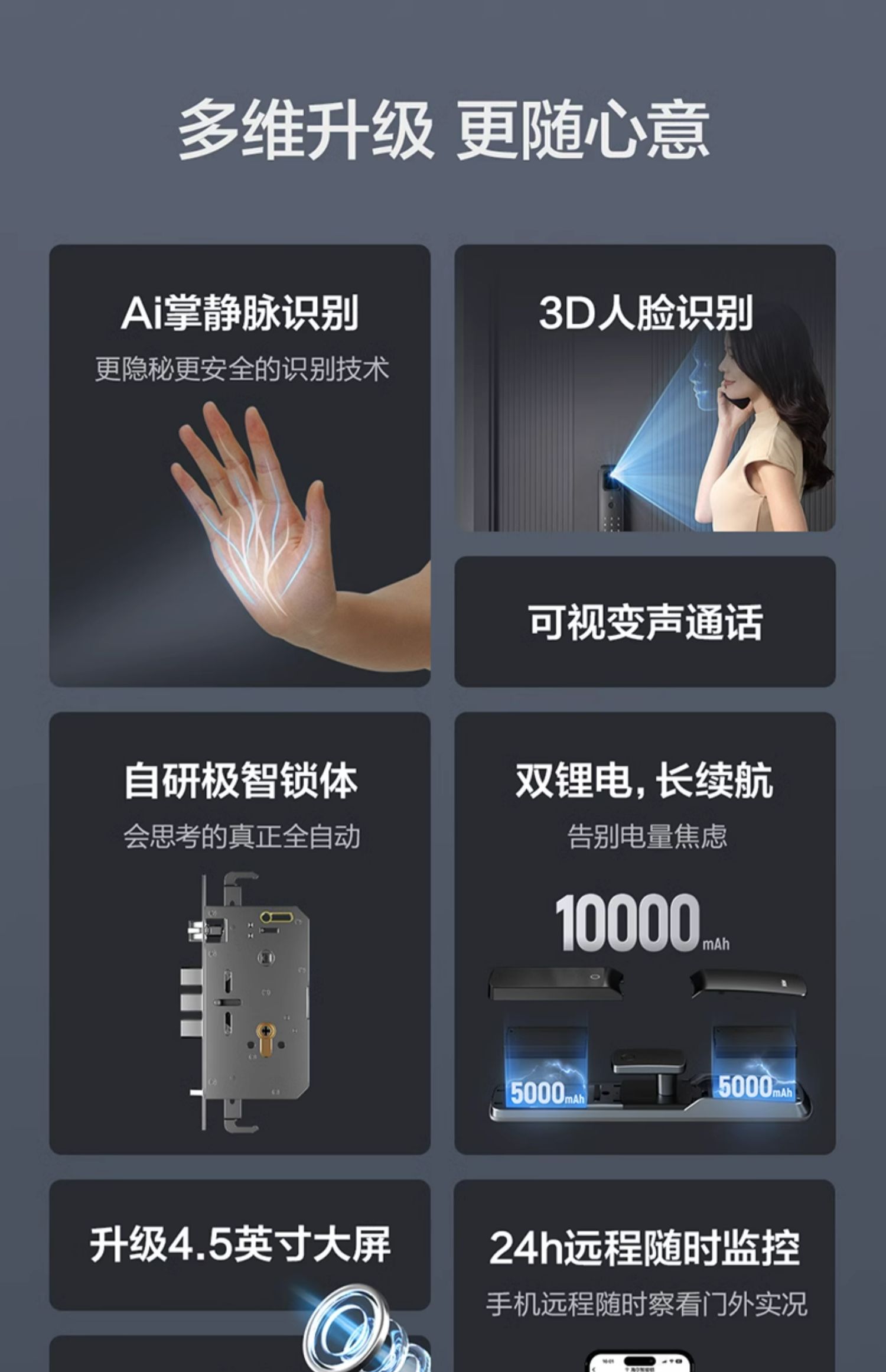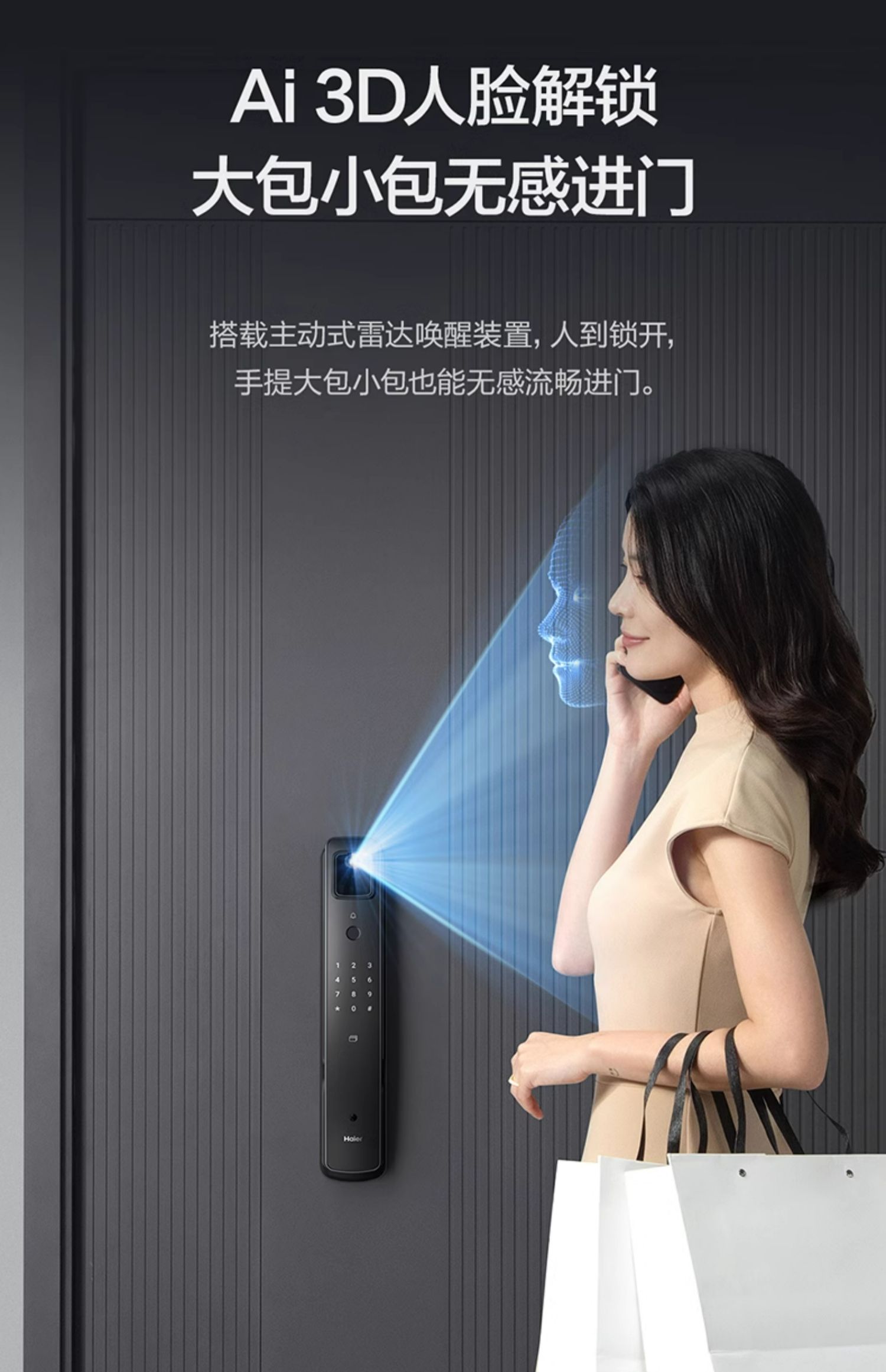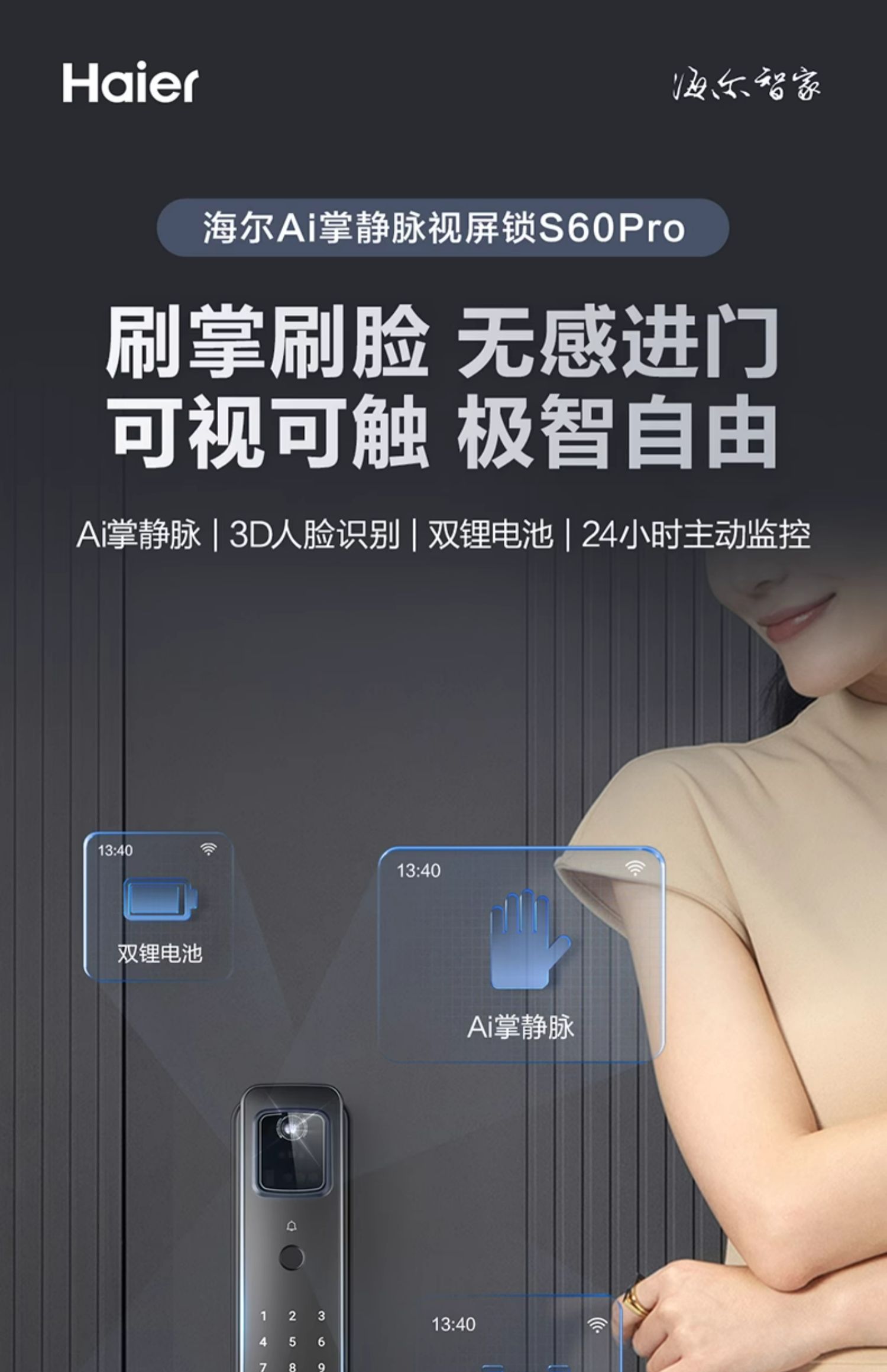 新品-海尔掌静脉人脸智能门锁防盗门智能锁可视猫眼密码锁指纹锁S60Pro