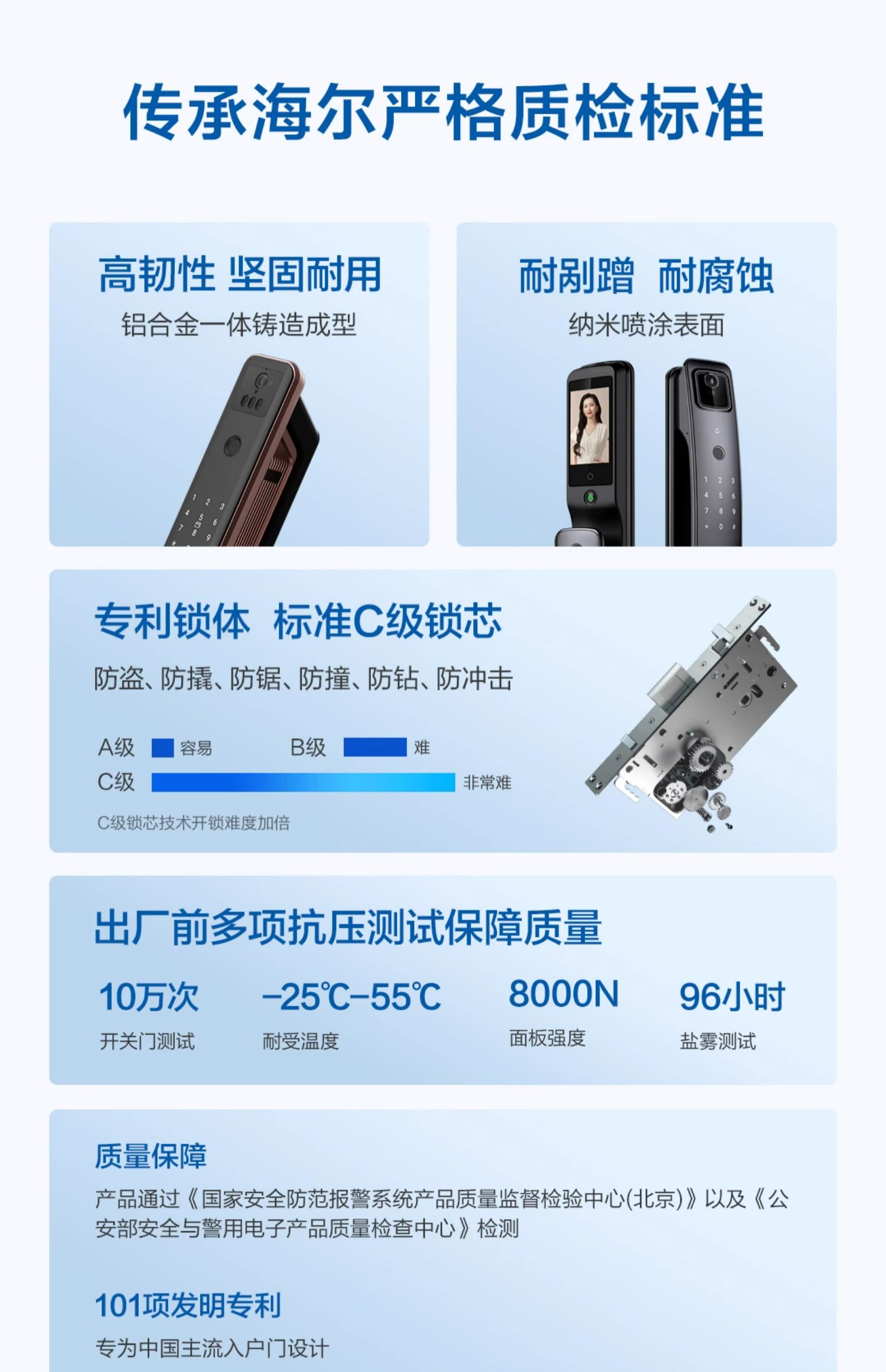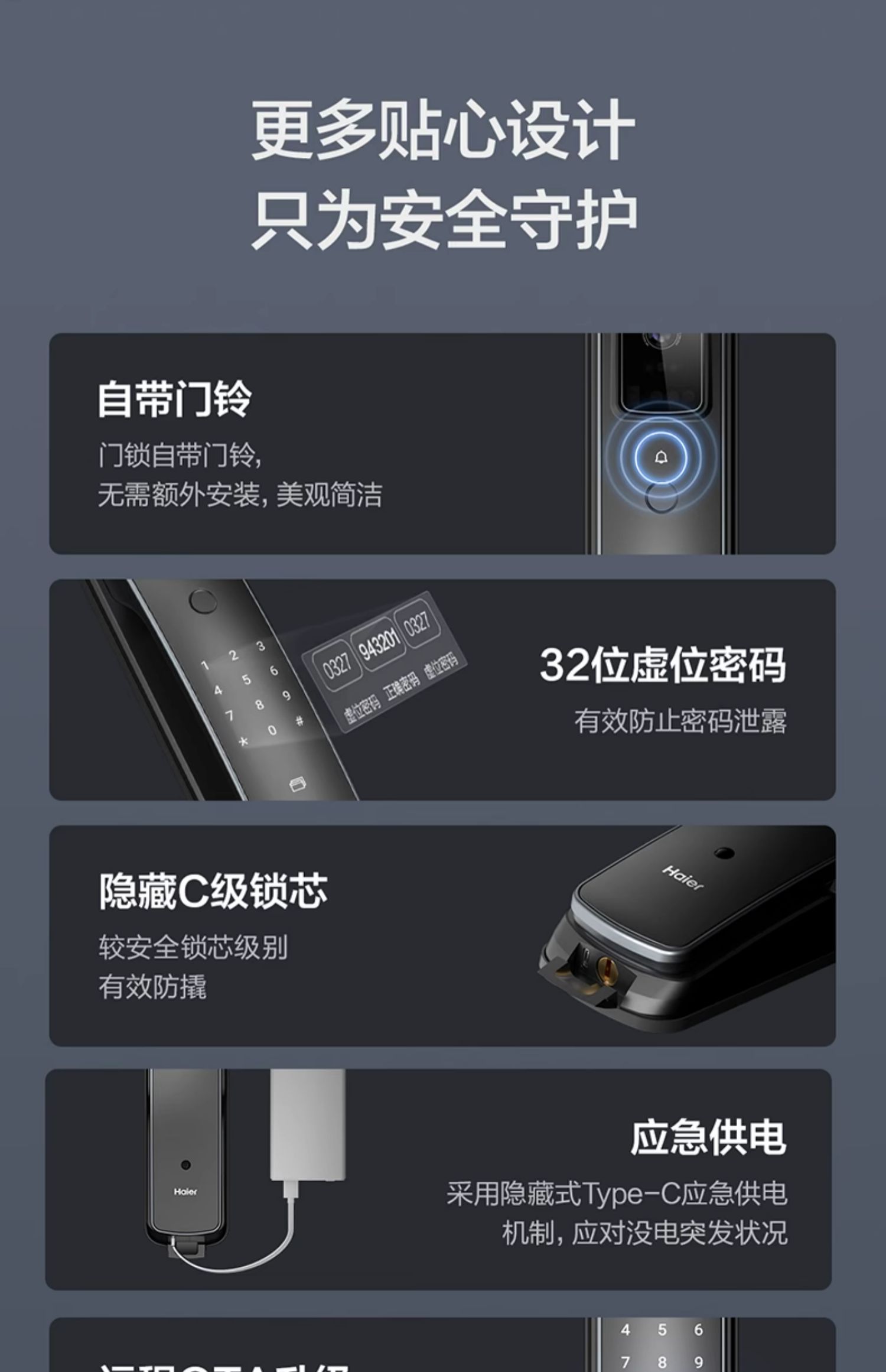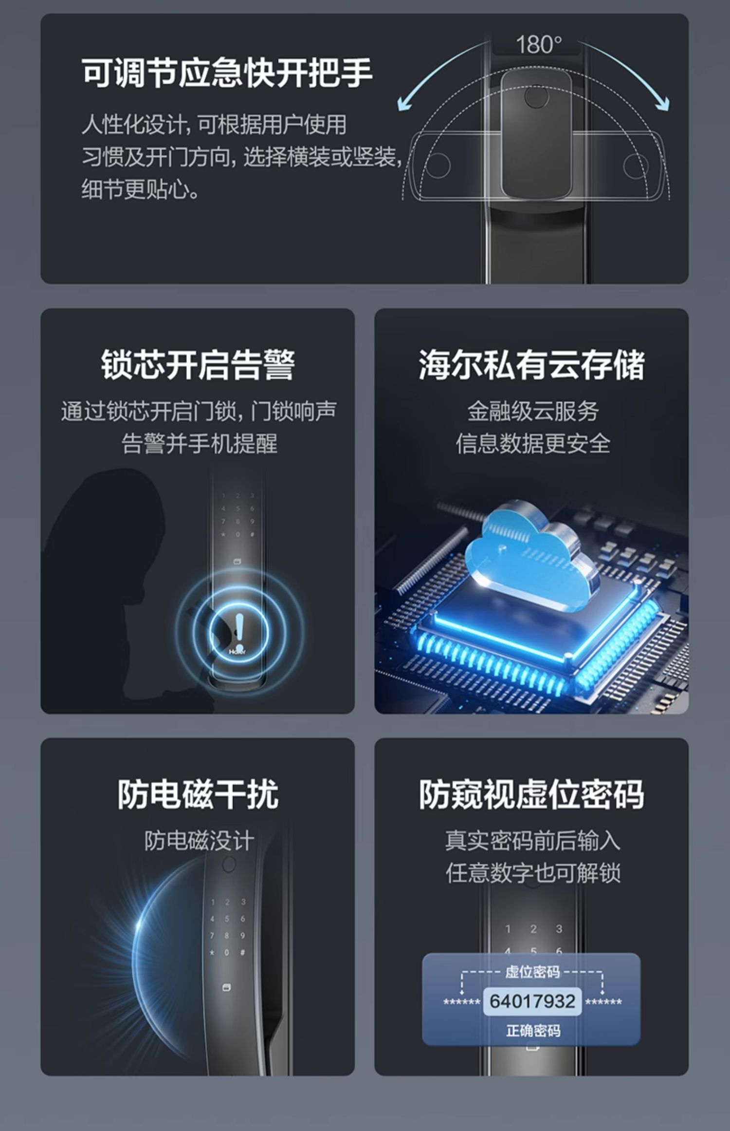 新品-海尔掌静脉人脸智能门锁防盗门智能锁可视猫眼密码锁指纹锁S60Pro