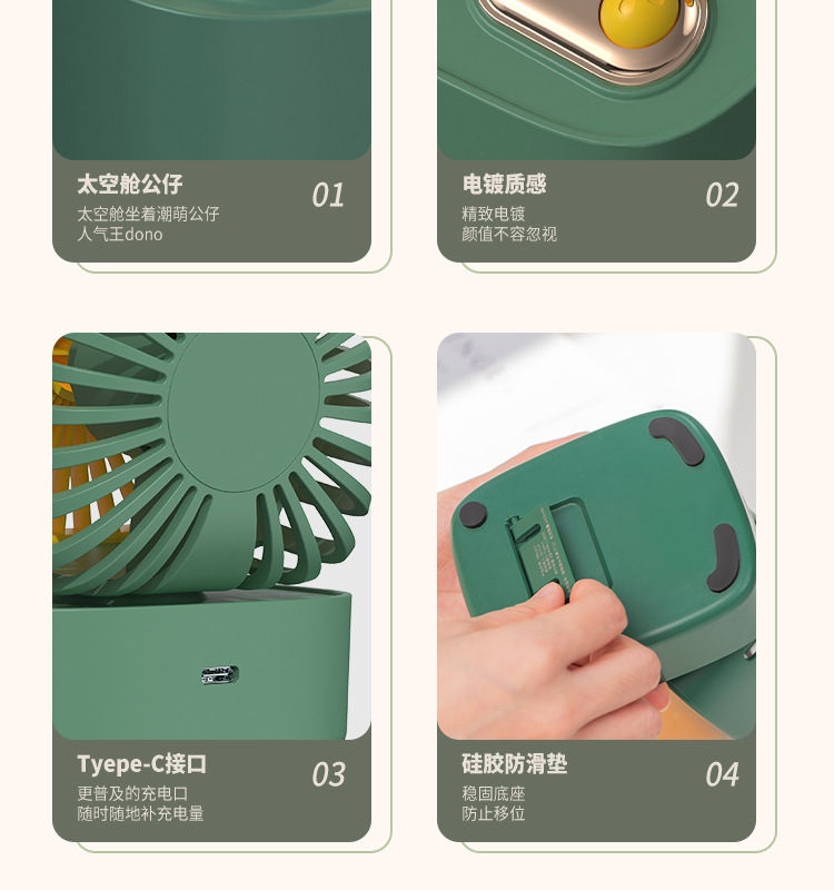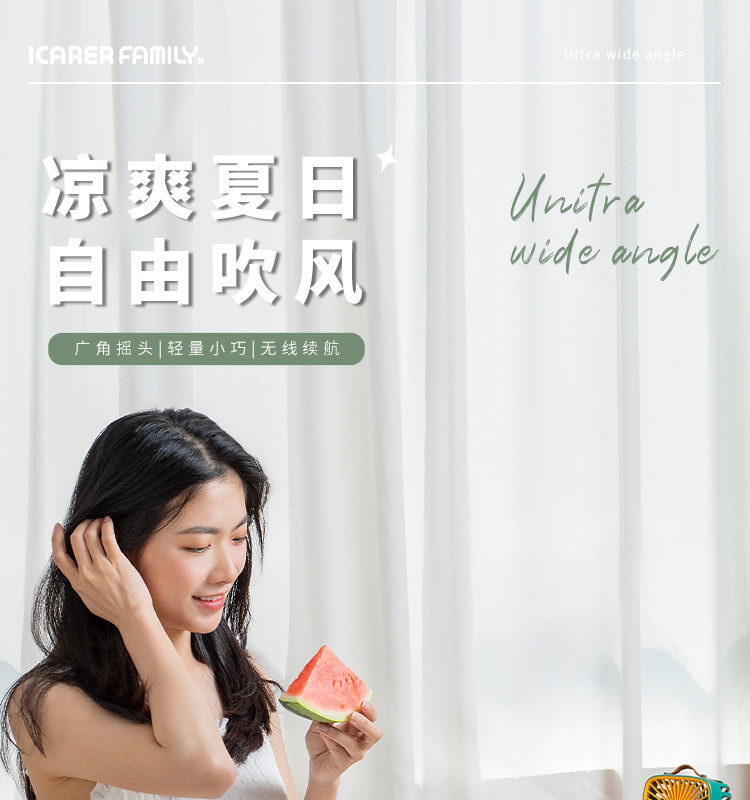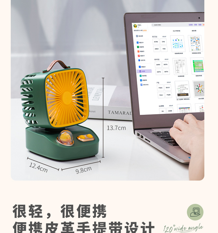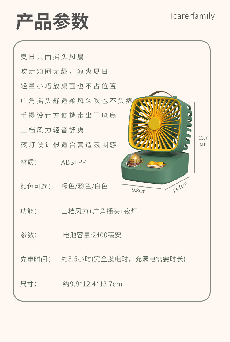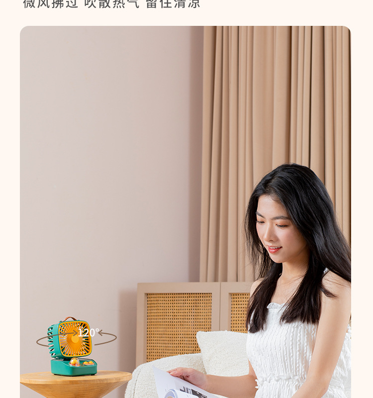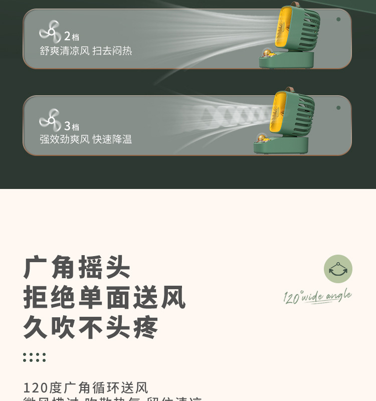 【小巧便携!广角摇头风扇】 2023新款桌面摇头风扇充电小巧户外便携夜灯静音空调扇