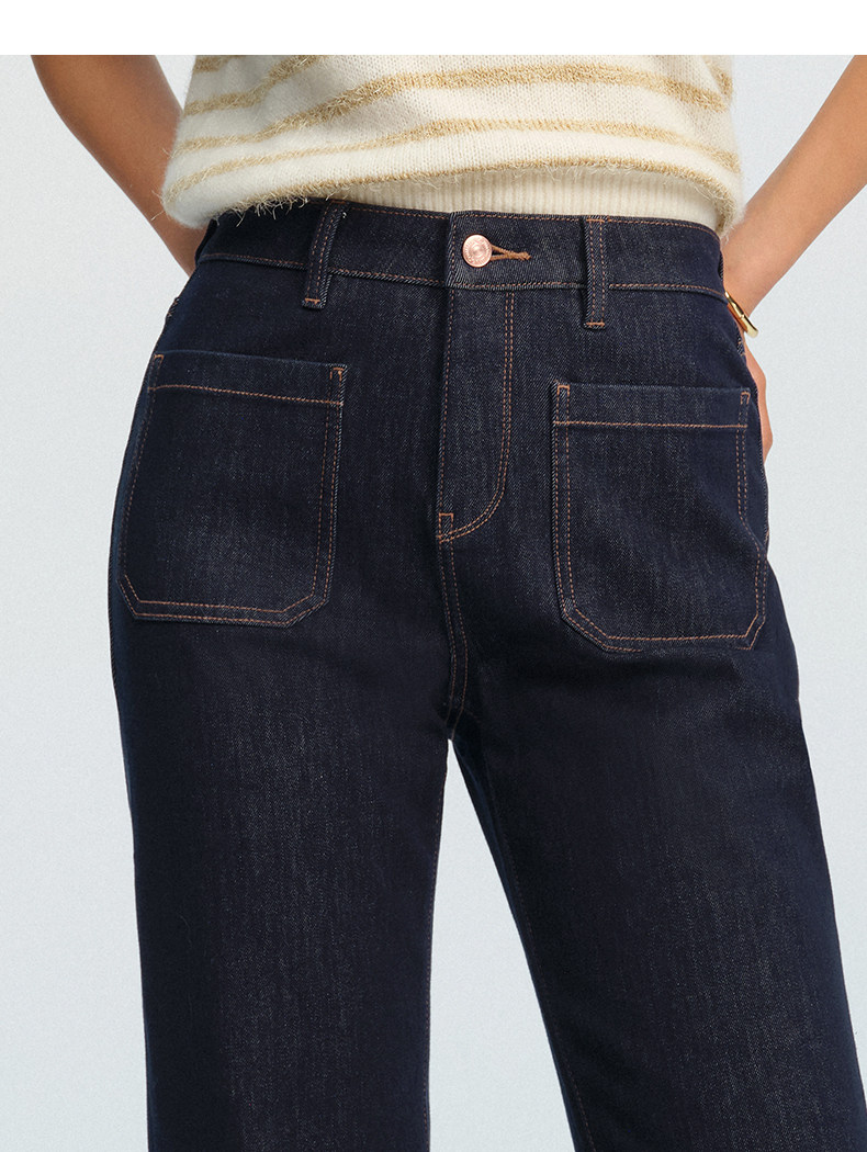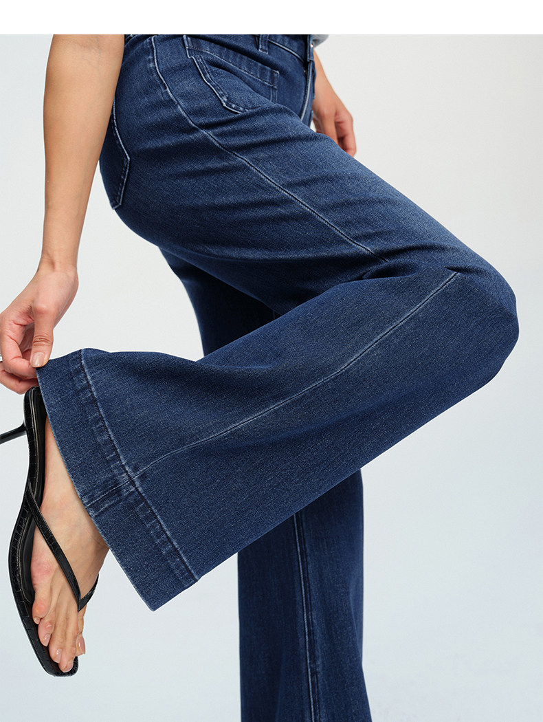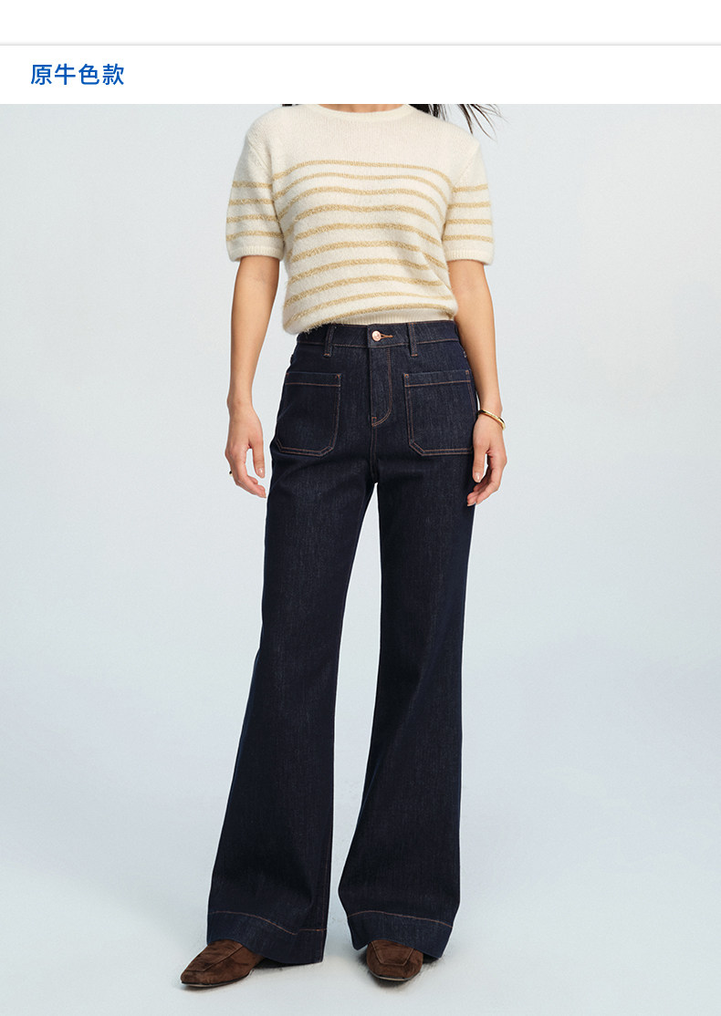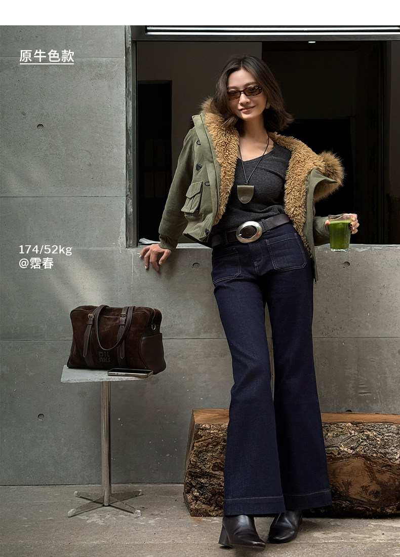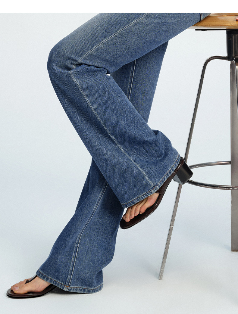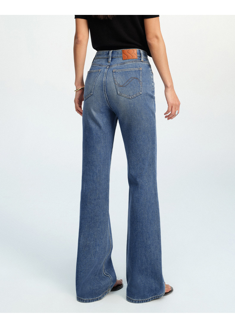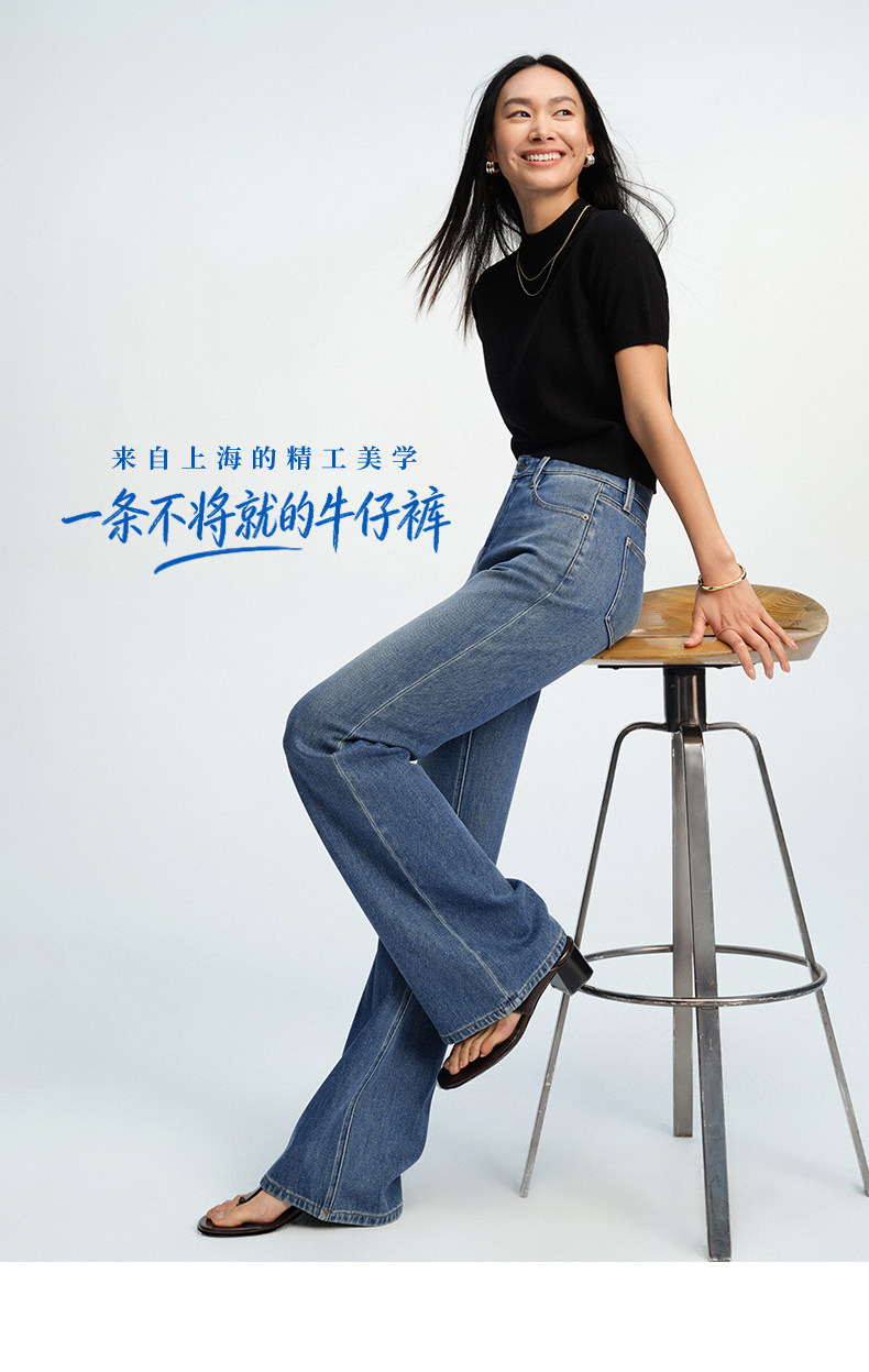 【四面弹超模裤】simplepieces春新款SPS牛仔修身拖地微喇喇叭裤